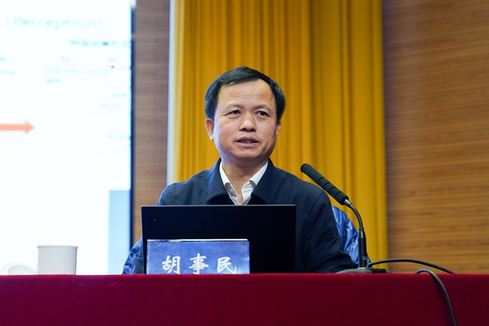 讲座中,胡事民院士还详细介绍了清华大学自主研发的国产深度学习框架“计图”,及该框架在技术上的优势和在实际应用中的成效。他指出,以“计图”为核心,基于国产硬件推进人工智能算法应用创新,构建一个开放共赢的人工智能生态链,是我国AI产业未来发展的关键方向。“人工智能的学习不能仅停留在理论层面,必须通过实际编程和项目实践来加深理解。”胡事民院士分享了在培养人工智能方向人才方面的宝贵经验,特别强调了动手实践的重要性。他认为,课堂教学不仅是听讲,更应注重动手编程,只有通过实际的编码与实验,学生才能真正理解算法的实现和应用,培养解决实际问题的能力。这一观点为人工智能人才的培养提供了重要的方向和方法。