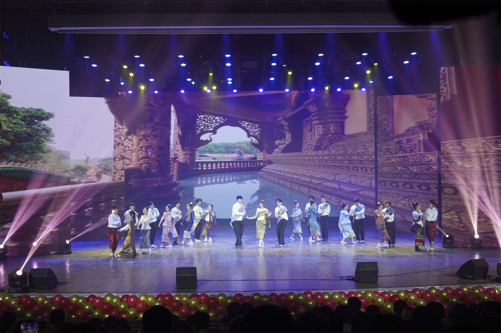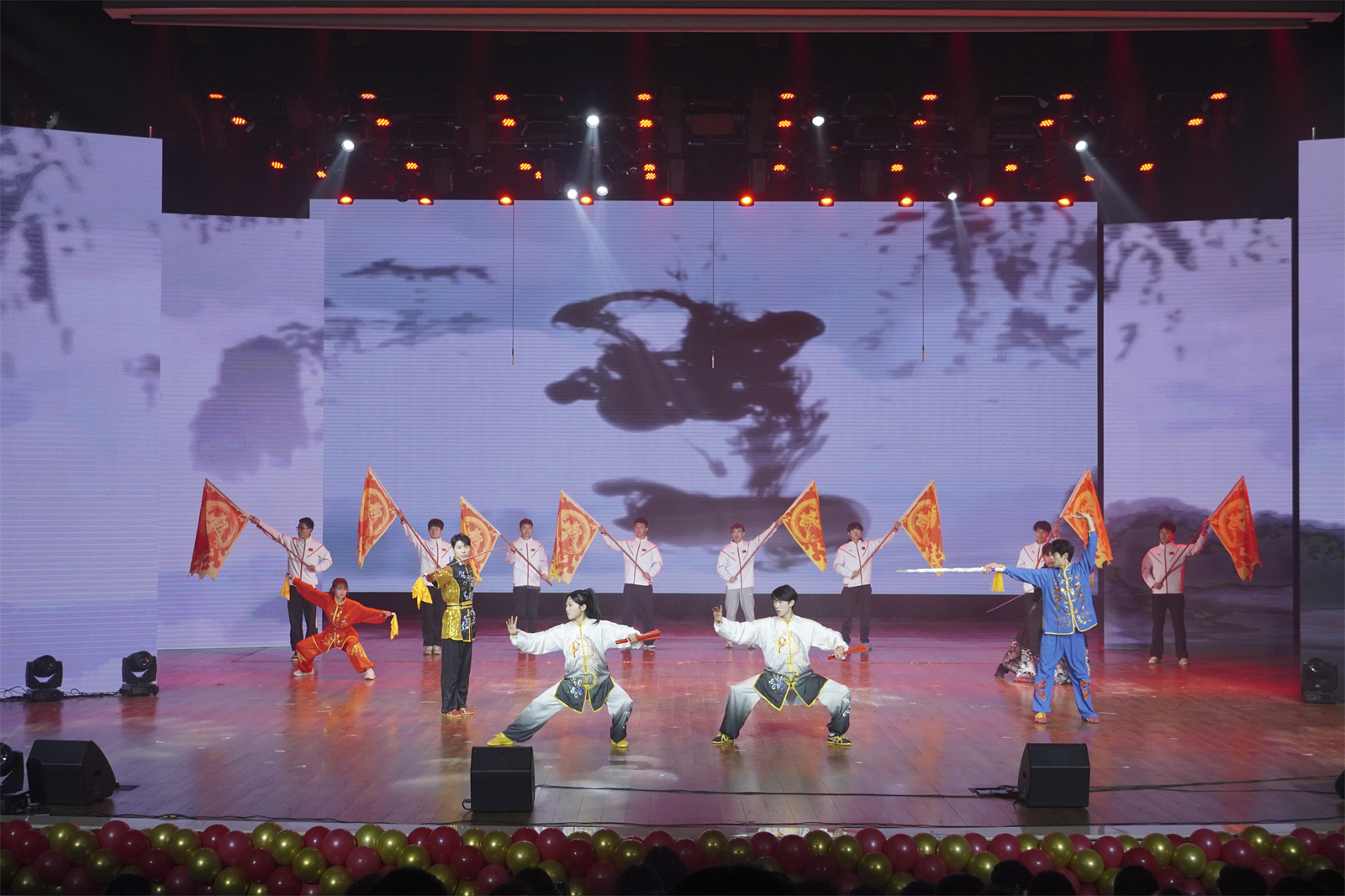 夜幕降临,华灯初上,一个个精彩纷呈的节目将祝福与欢乐传递给在场的每一位观众。明向校区的元旦晚会在交响序曲《红旗颂》恢宏的旋律中缓缓拉开帷幕。通过“云程发轫,扬帆启航”“赓续笃行,文脉流长”“团结奋进,共谱华章”三个篇章主题,串起14个节目。歌曲《幸福中国一起走》唱出了对幸福中国的美好向往;《溯跃》的舞者化身灵动鱼儿,在与激流的抗争中,显示出坚韧、奋发、勇进的精神;器乐合奏《战台风》弦乐铿锵奏响了奋斗号角;舞台剧《我的三次方》讲述了太理青年的青春成长故事;走秀《塑影华章》带领观众领略了山西古建魅力;舞蹈《唐宫夜宴》舞姿曼妙重现了大唐盛世辉煌;武术《武韵飞扬》在刀光剑影尽显武术之魂;舞蹈《团结舞》和《丝路舞韵》尽显四海同风和民族团结;《青春歌曲串烧》唱响绚丽多姿的青春之歌。大合唱《我爱你中国》将现场气氛推向高潮,唱出了全校师生献给祖国母亲的新年祝福。