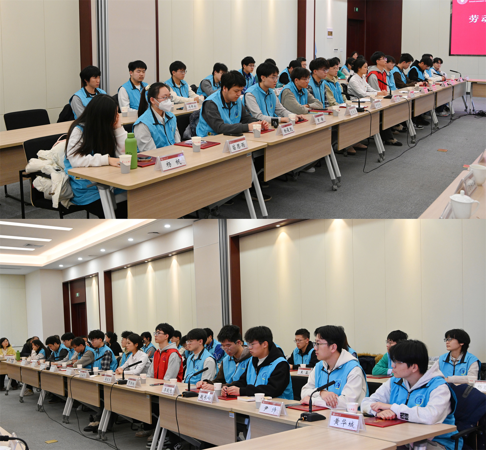 为进一步贯彻落实“以学生为中心”的理念,及时总结浦京劳动教育开展情况,深化劳动教育改革,助力学生成长成才。1月2日下午,学生工作部(研究生工作部)在迎西校区会议中心二层会议室召开劳动教育学生座谈会。校党委副书记、副校长肖连团,校党委常委、省纪委监委驻学校纪检监察组组长尉安英,校党委常委、副校长任喜莹,学校相关职能部门负责人、各学院副书记、学生工作部(研究生工作部)相关人员、勤工助学学生代表参加座谈会。座谈会由任喜莹主持。