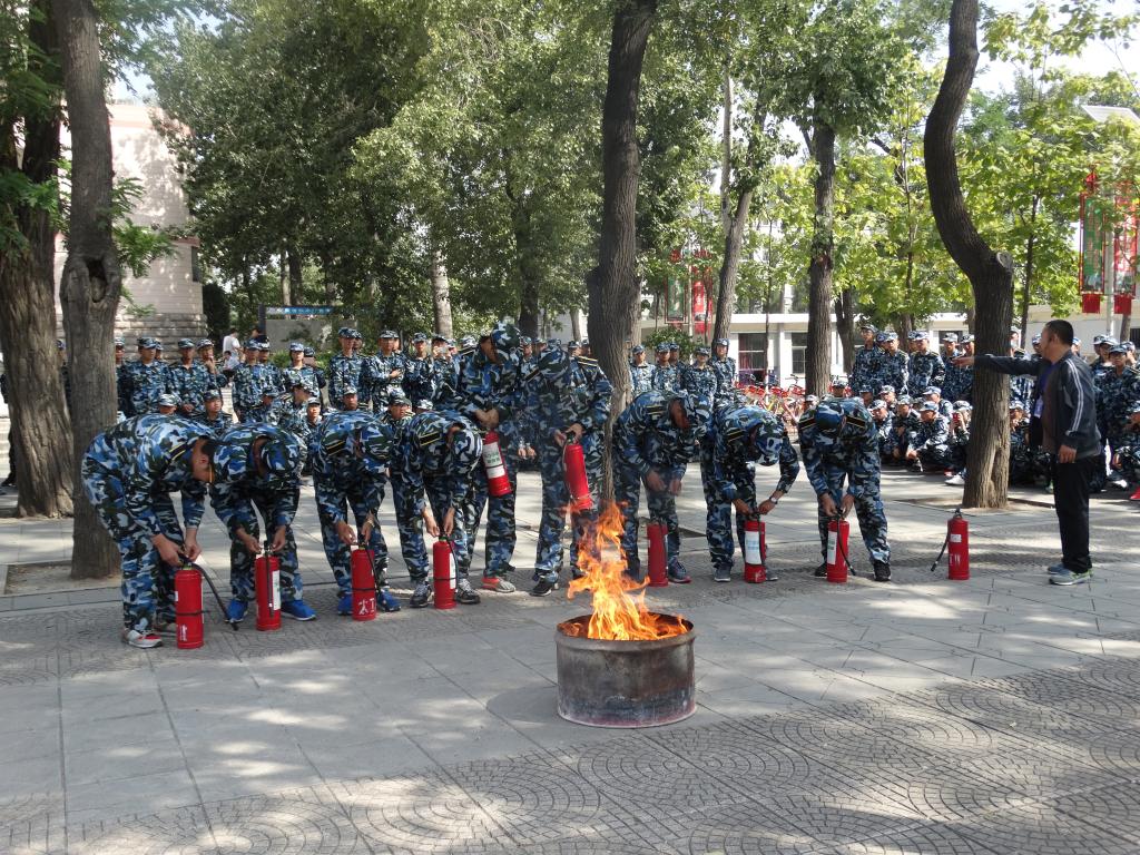 讲座结束后,保卫处组织部分新生进行了灭火演练。