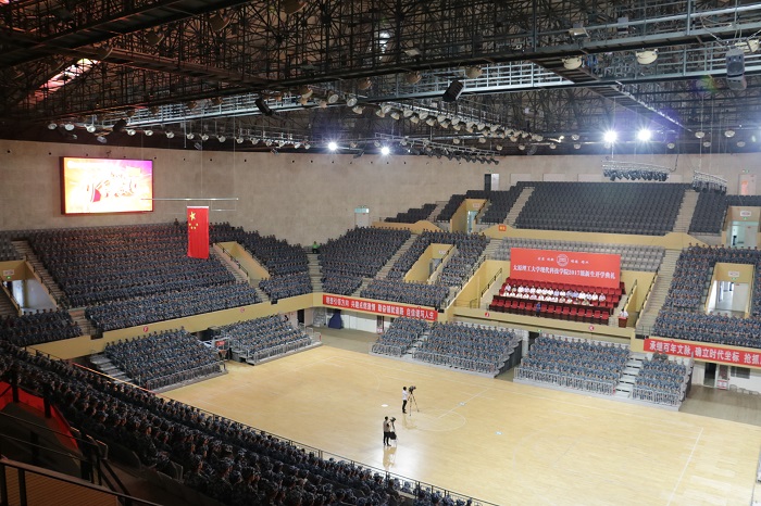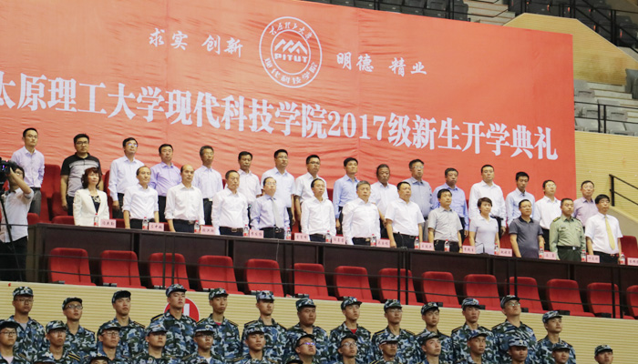 9月18日下午,现代科技学院2017级新生开学典礼在孝义市体育馆隆重举行。校党委书记吴玉程专程赶往孝义参加典礼并发表讲话。校党委办公室主任任喜莹,孝义市政府市长王廷洪、市人大常委会主任李殿生、副市长赵晓琴、市政府秘书长马勇、市武装部副部长何良琦,现代科技学院党政领导、中层干部、2017级全体新生及辅导员、承训教官参加大会。大会由学院党委副书记吉育峰主持。