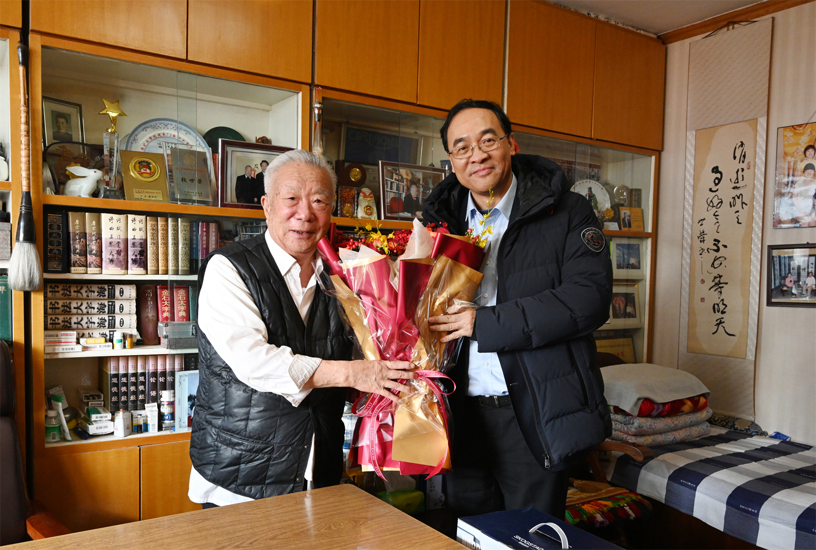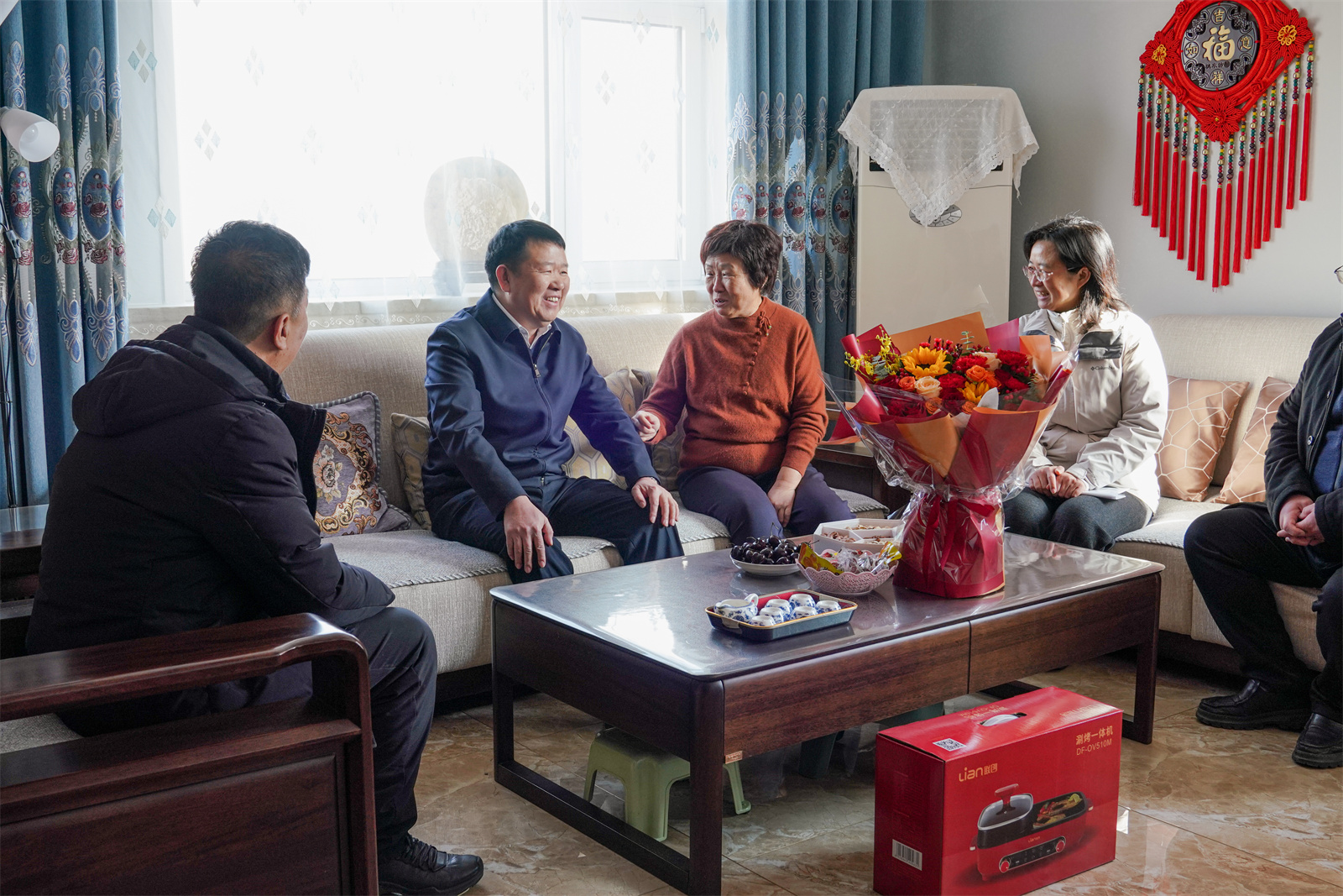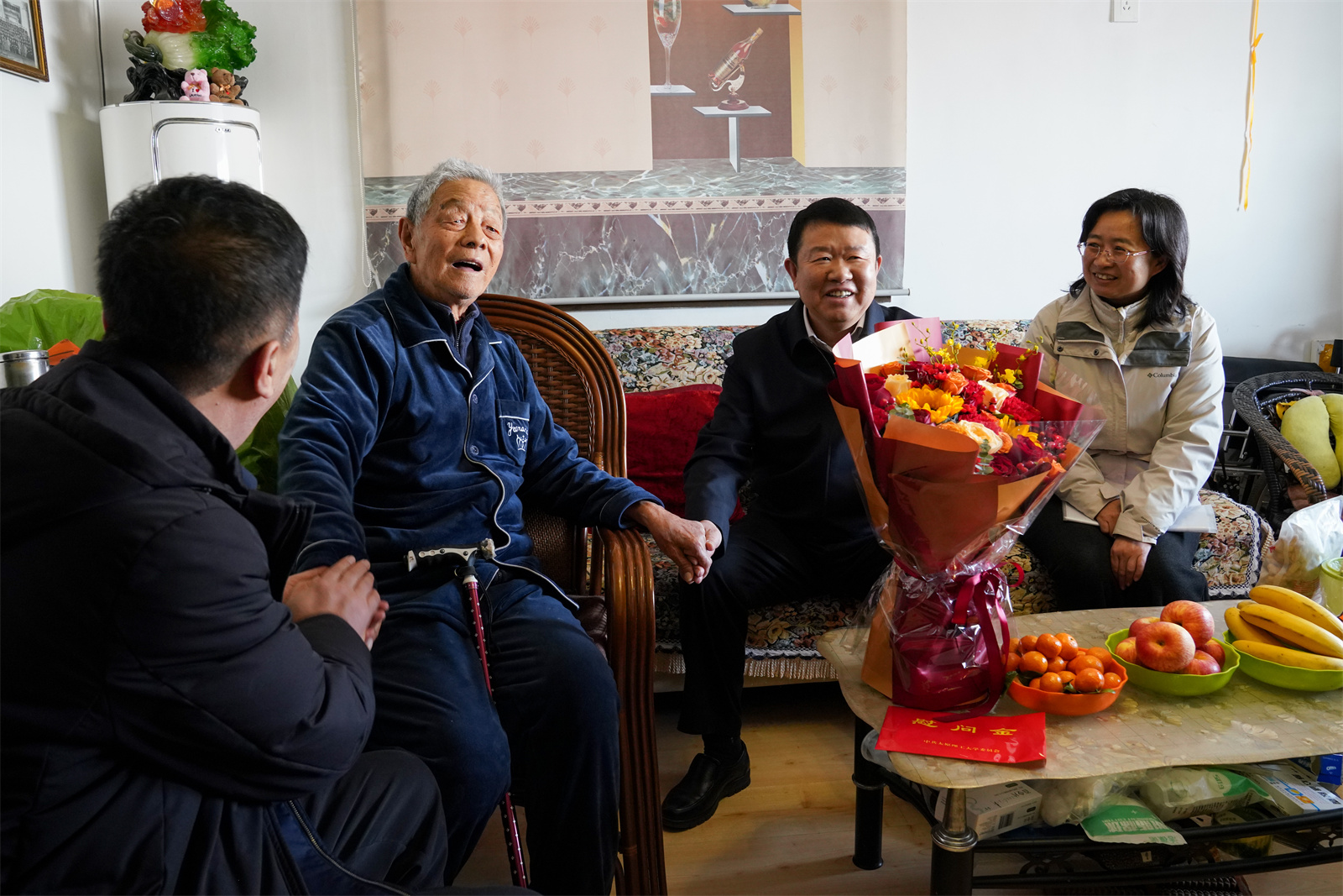 孙宏斌一行在明向校区走访慰问了保卫处、公寓管理服务中心、饮食服务中心、物业服务中心、财务部,到柏林校区看望老党员、老教师,在虎峪校区与两院院士亲切交流,为大家汇报了过去一年学校在教学科研、人才培养等方面取得的成绩。校领导对保卫人员为校园安全稳定做出的努力、对公寓管理中心坚守一线为学生营造温馨家园、对饮食服务中心始终把安全生产放在首位确保餐饮安全和营养丰富、对物业服务中心用坚守和奉献诠释责任担当、对财务人员一年来的辛勤付出等表示衷心感谢,希望大家继续努力,为学校的发展贡献智慧和力量。在浦京原党委副书记、副校长树成昌家中,孙宏斌与树成昌和其爱人三位老清华聊往事、聊专业,分外亲切,介绍了学校近期的建设发展状况,孙宏斌希望二老保重身体的同时,多为学校各项事业的建设建言献策。在虎峪校区原位改性采矿教育部重点实验室,孙宏斌向中国科学院院士赵阳升致以诚挚问候和美好祝愿,关切询问了赵阳升院士在科研创新和日常生活等方面的有关情况,对赵阳升院士多年来坚守科研一线,埋头苦干、矢志报国的精神表示敬佩,希望赵阳升院士带领团队进一步瞄准学术前沿,深化科学研究,加快科技创新,提升人才培养质量,为学校“双一流”建设贡献力量。