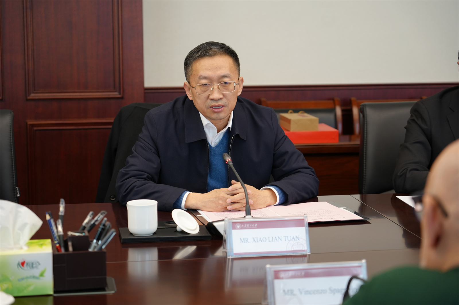 肖连团代表学校对Vincenzo Spagnol教授一行来校交流表示欢迎,他表示高等教育作为推动社会进步的重要力量,肩负着培养全球公民、促进跨文化理解的重任,只有通过开放、包容、互鉴的国际合作,才能应对全球性挑战,推动人类文明的共同进步。他希望可以在科研合作、人才培养、师生交流等领域与巴里理工大学展开全方位、多层次的合作,共同擘画两校未来发展的宏伟蓝图。