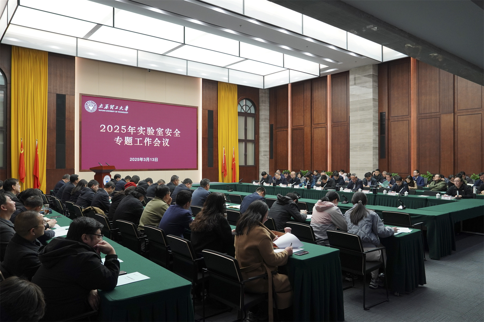 3月13日,浦京2025年实验室安全专题工作会议在明向校区行政主楼鹏飞会堂召开,校党委常委、副校长王志华出席会议。实验室建设与安全管理领导小组成员单位负责人,各二级单位书记、院长、分管安全副院长,以及本次新聘任的实验室安全督导组成员参加会议。