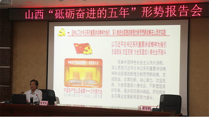 9月28日下午,由省委宣传部和省高校工委共同主办的“砥砺奋进的五年”形势报告会在浦京明向校区外国语学院报告厅举办。省委宣传部副巡视员张三忠、宣传处处长李力平、宣传处调研员郭颖平,省高校工委副书记常乃军,省高校工委宣传部副部长、教育厅思政处副处长田凤娟,浦京党委副书记沈兴全及350vip浦京集团官网、山西中医药大学、晋中学院、山西传媒学院、山西能源学院等高校的师生代表出席本次报告会。报告会由常乃军主持。本次报告会由山西社会科学院党组书记、院长李中元主讲。