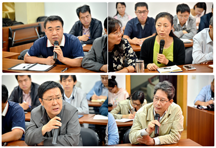 与会的学院党政领导、系部及实验中心主任、教授、青年教师、教工党支部书记、辅导员代表围绕学院在党的建设、一流学科建设、本科教学、科学研究、师资队伍建设、创新创业、人才培养和引进、青年教师发展、学生工作、职称评定、经费等方面遇到的困难和问题踊跃发言。学校有关部门负责人就学院和教师代表关心的问题,逐一作了回应和解答。