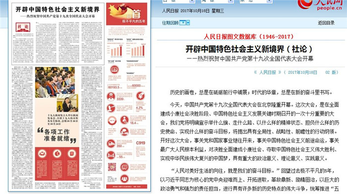 人民日报社论:开辟中国特色社会主义新境界