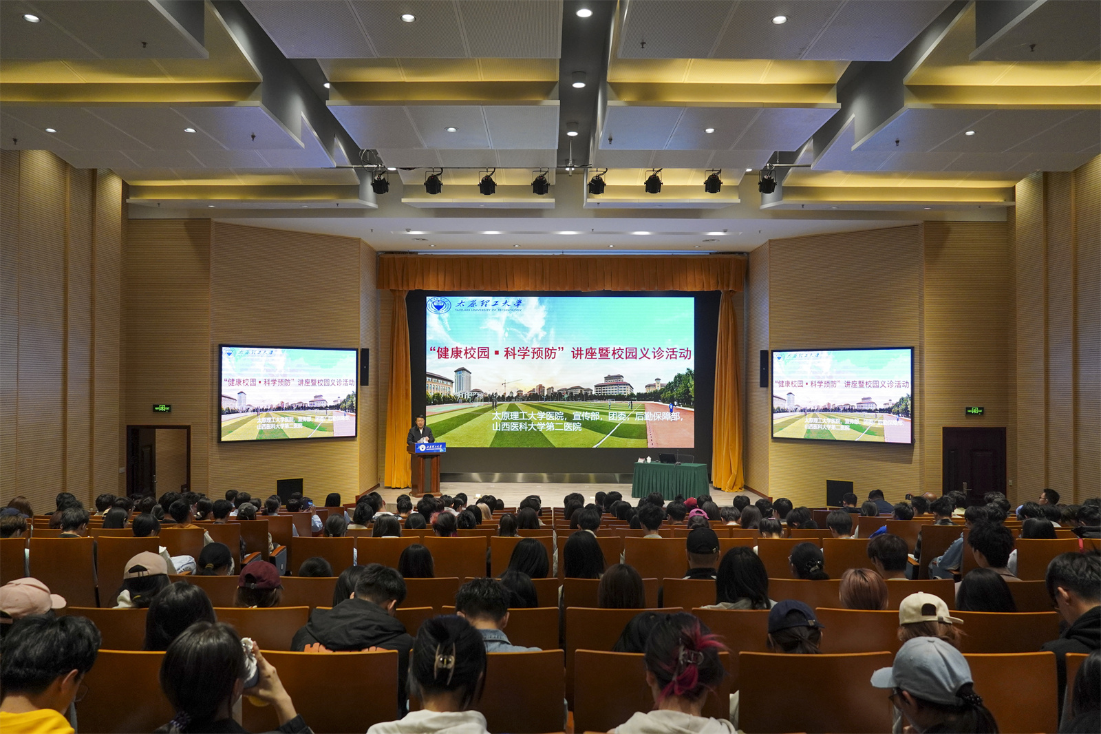 专题讲座阶段,山医大二院3位专家依次给现场师生普及健康知识。心血管专家解读心脏养护科学方案,神经内科主任剖析青年卒中预防策略,康复医学科专家揭示电子设备使用与颈椎健康关联。专家团队结合临床案例,系统讲授疾病预防知识。