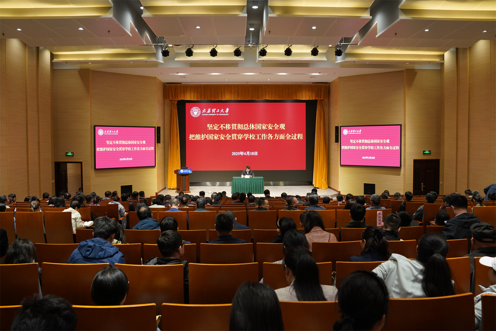 为深入学习贯彻落实总体国家安全观,增强全校师生的国家安全意识,4月18日,校党委书记沈兴全以《坚定不移贯彻总体国家安全观 把维护国家安全贯穿学校工作各方面全过程》为主题,在明向校区行政楼一层报告厅为师生讲授了一堂全面、深刻、生动的专题课。各相关职能单位干部、各学院师生代表、辅导员到场倾听。