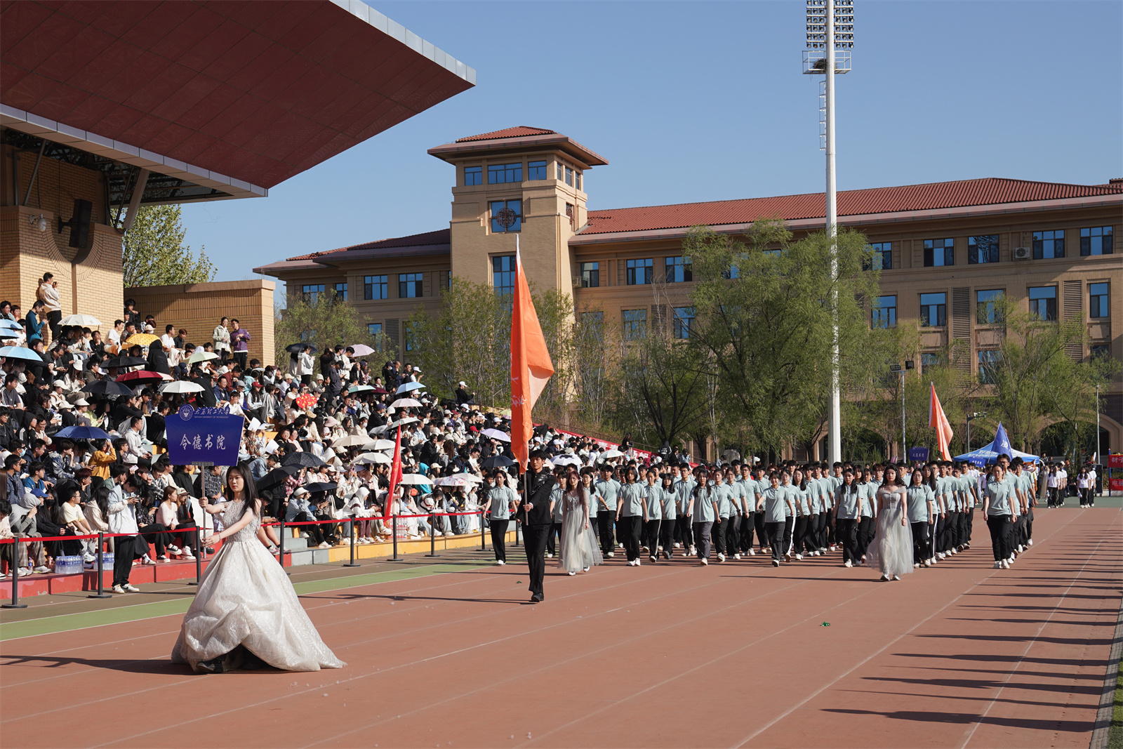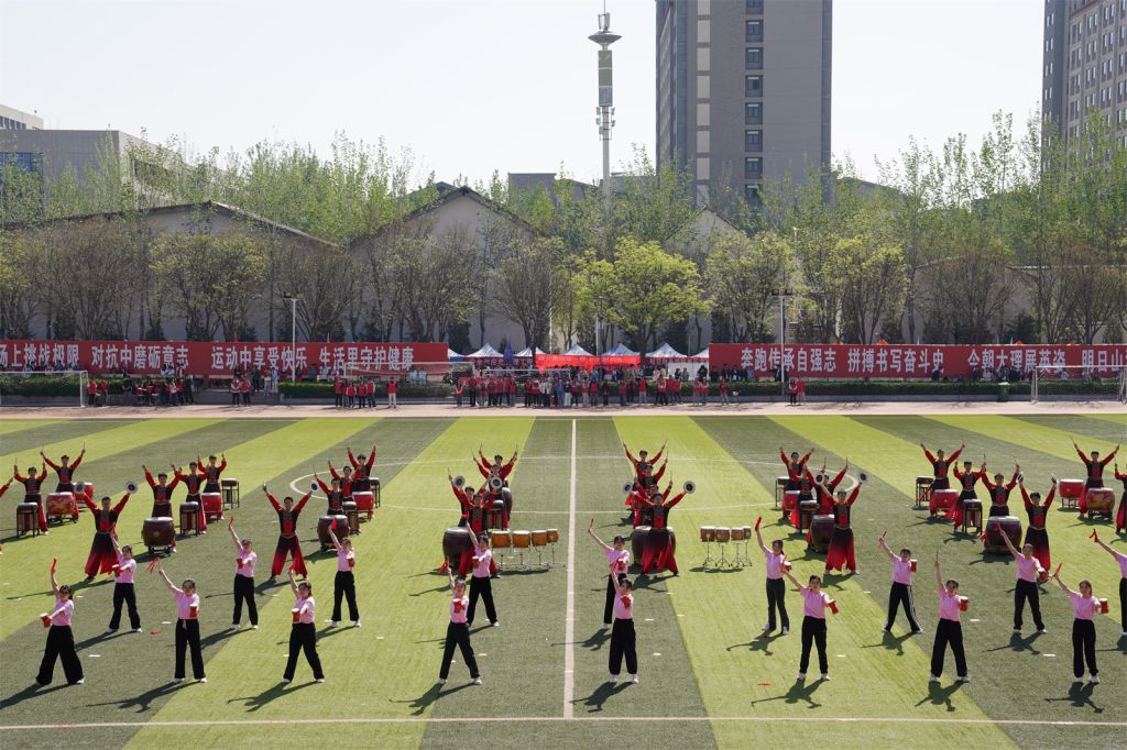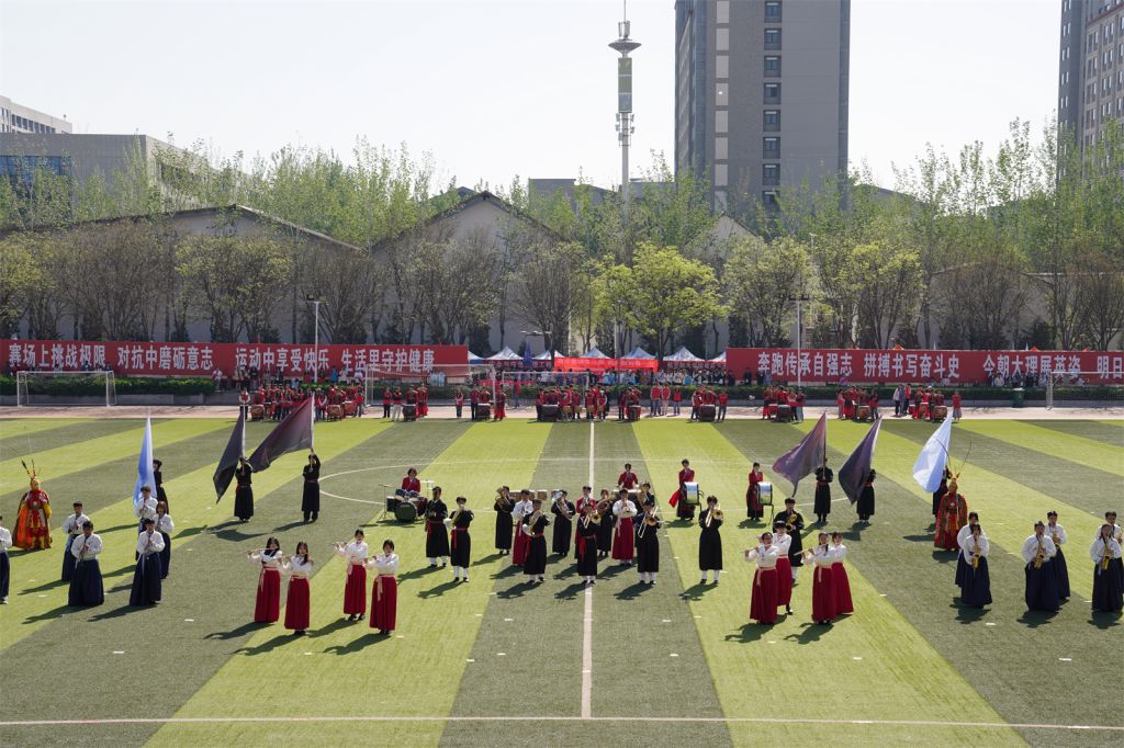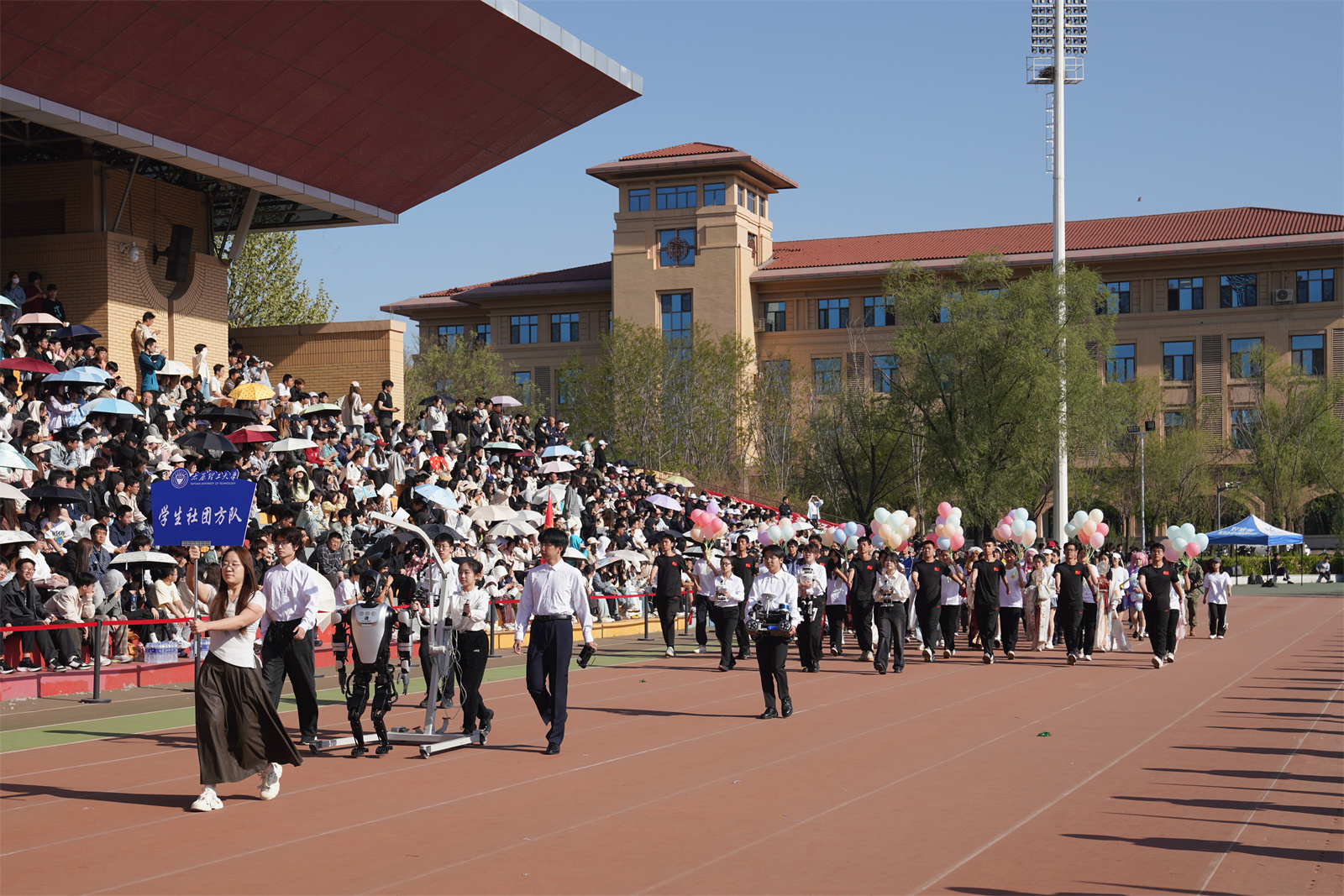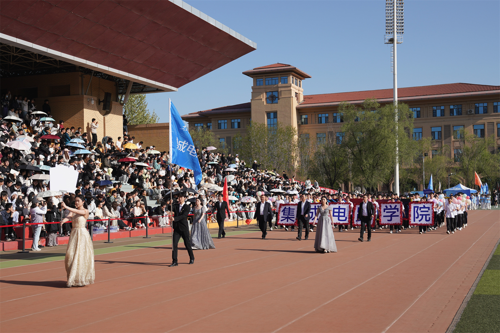 精彩纷呈的文体表演拉开了运动会的序幕。 由求实学院、体育与健康工程学院带来的武术表演《武韵生山河》,行云流水间蕴阴阳之道,动作舒缓流畅,一招一式尽显传统养生功法的优雅神韵。集体棍术表演气势如虹,整齐划一的动作,配合默契的阵型变换,让大家感受到棍术的雄浑豪迈。红缨抖动,银枪闪烁,枪术表演尽显英姿飒爽,仿佛进入金戈铁马的古代战场。在团体舞《铿锵律动、乐舞华章》中,动感的音乐骤然响起,灵活的队形、整齐的动作,舞者们以肢体为笔,以韵律为墨,书写“科学运动,健康中国”。由人工智能学院、建筑与艺术学院奏响的磅礴之歌《欢腾鼓舞》,以中国鼓乐为基调,以山西锣鼓为主体,以创新手持腰鼓为突破,突出国家级非遗文化传承与发展。管乐团带来的表演《晋韶云章》巧妙融合人工智能手段,为传统管乐注入新活力,以独特视角展现文化传承与创新风貌。