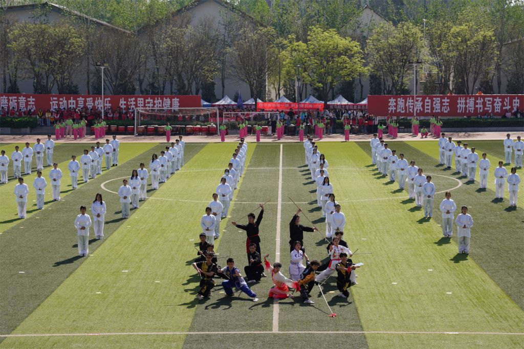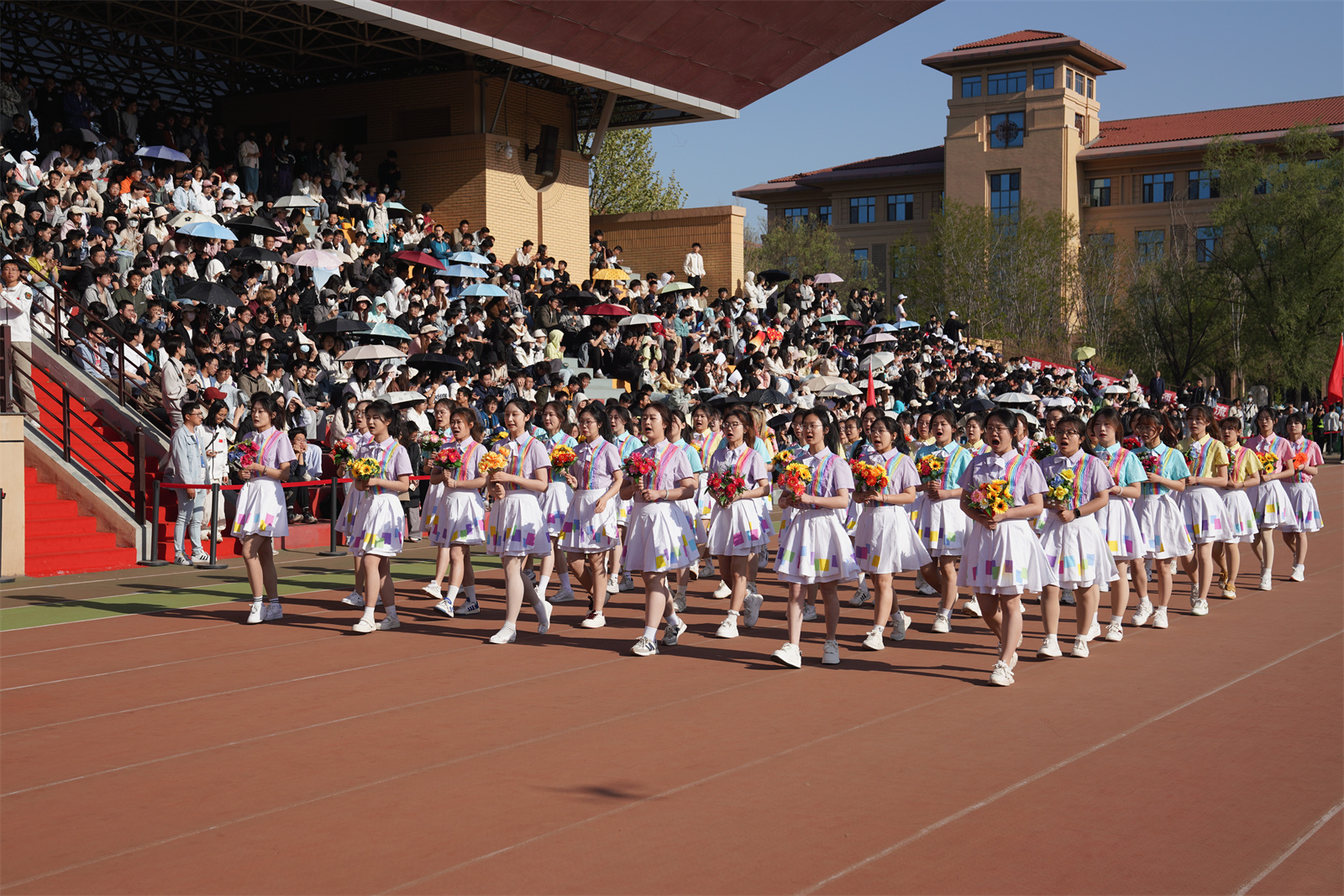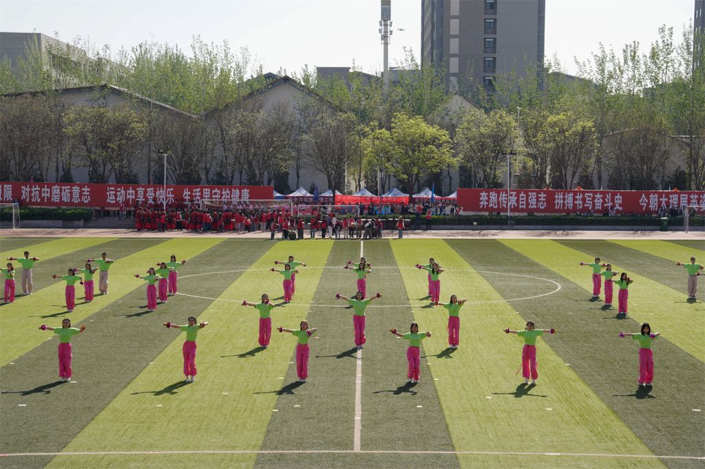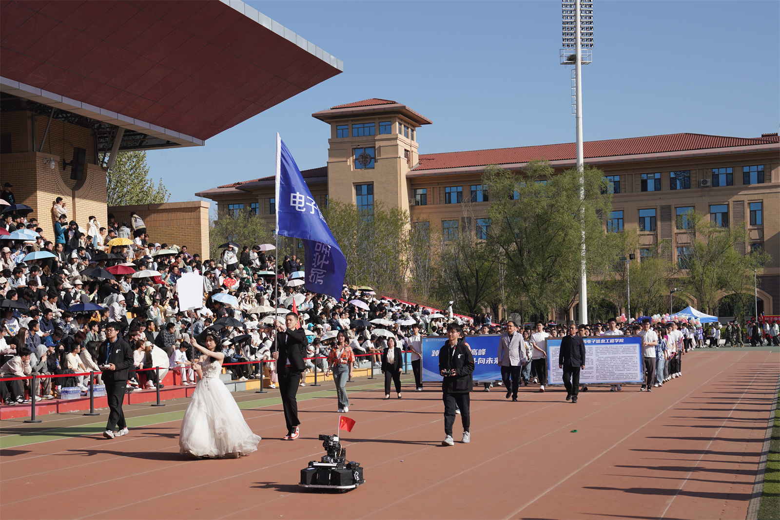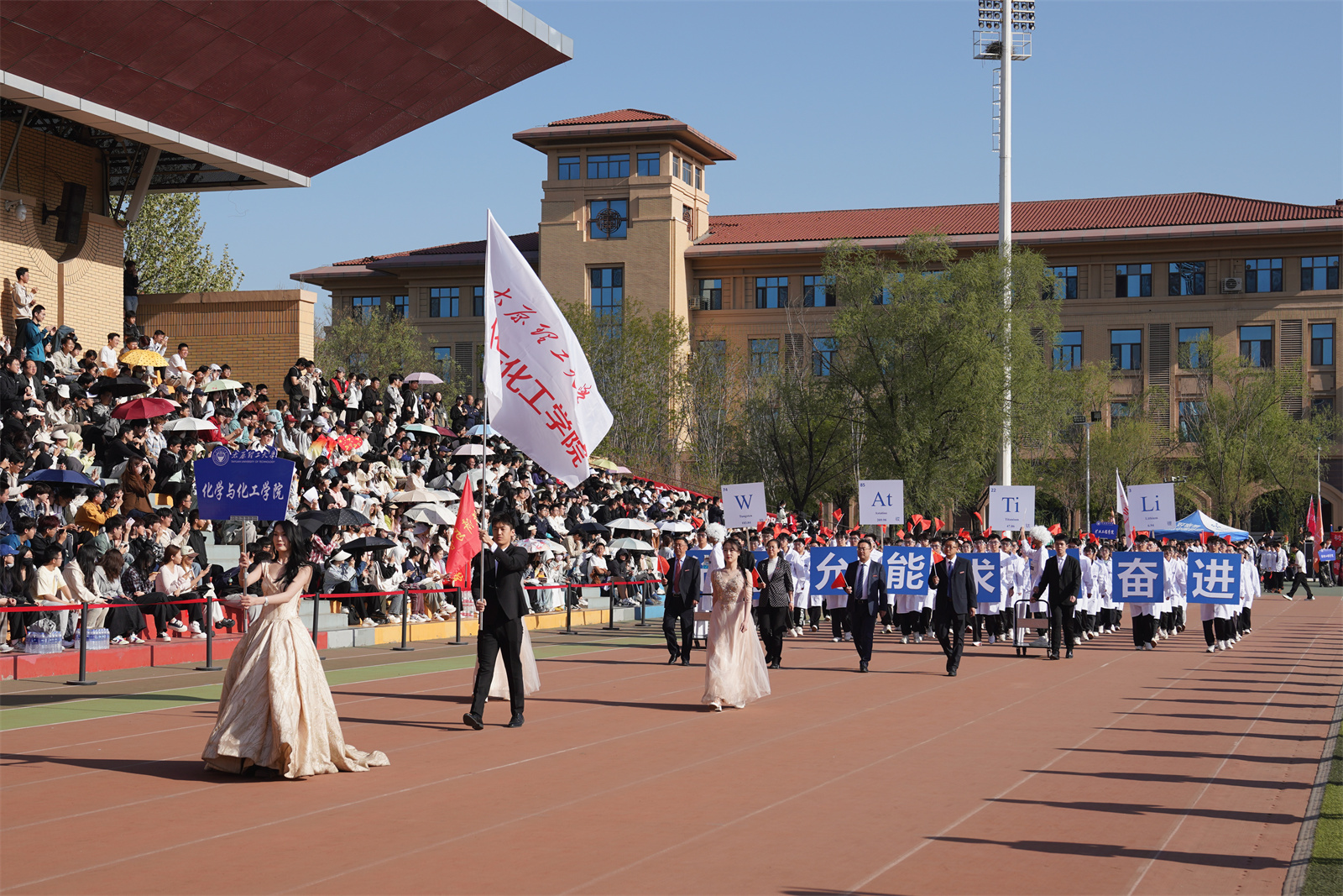精彩纷呈的文体表演拉开了运动会的序幕。 由求实学院、体育与健康工程学院带来的武术表演《武韵生山河》,行云流水间蕴阴阳之道,动作舒缓流畅,一招一式尽显传统养生功法的优雅神韵。集体棍术表演气势如虹,整齐划一的动作,配合默契的阵型变换,让大家感受到棍术的雄浑豪迈。红缨抖动,银枪闪烁,枪术表演尽显英姿飒爽,仿佛进入金戈铁马的古代战场。在团体舞《铿锵律动、乐舞华章》中,动感的音乐骤然响起,灵活的队形、整齐的动作,舞者们以肢体为笔,以韵律为墨,书写“科学运动,健康中国”。由人工智能学院、建筑与艺术学院奏响的磅礴之歌《欢腾鼓舞》,以中国鼓乐为基调,以山西锣鼓为主体,以创新手持腰鼓为突破,突出国家级非遗文化传承与发展。管乐团带来的表演《晋韶云章》巧妙融合人工智能手段,为传统管乐注入新活力,以独特视角展现文化传承与创新风貌。