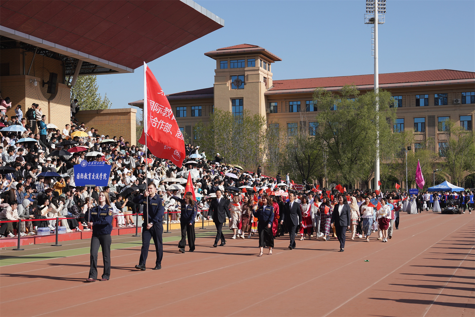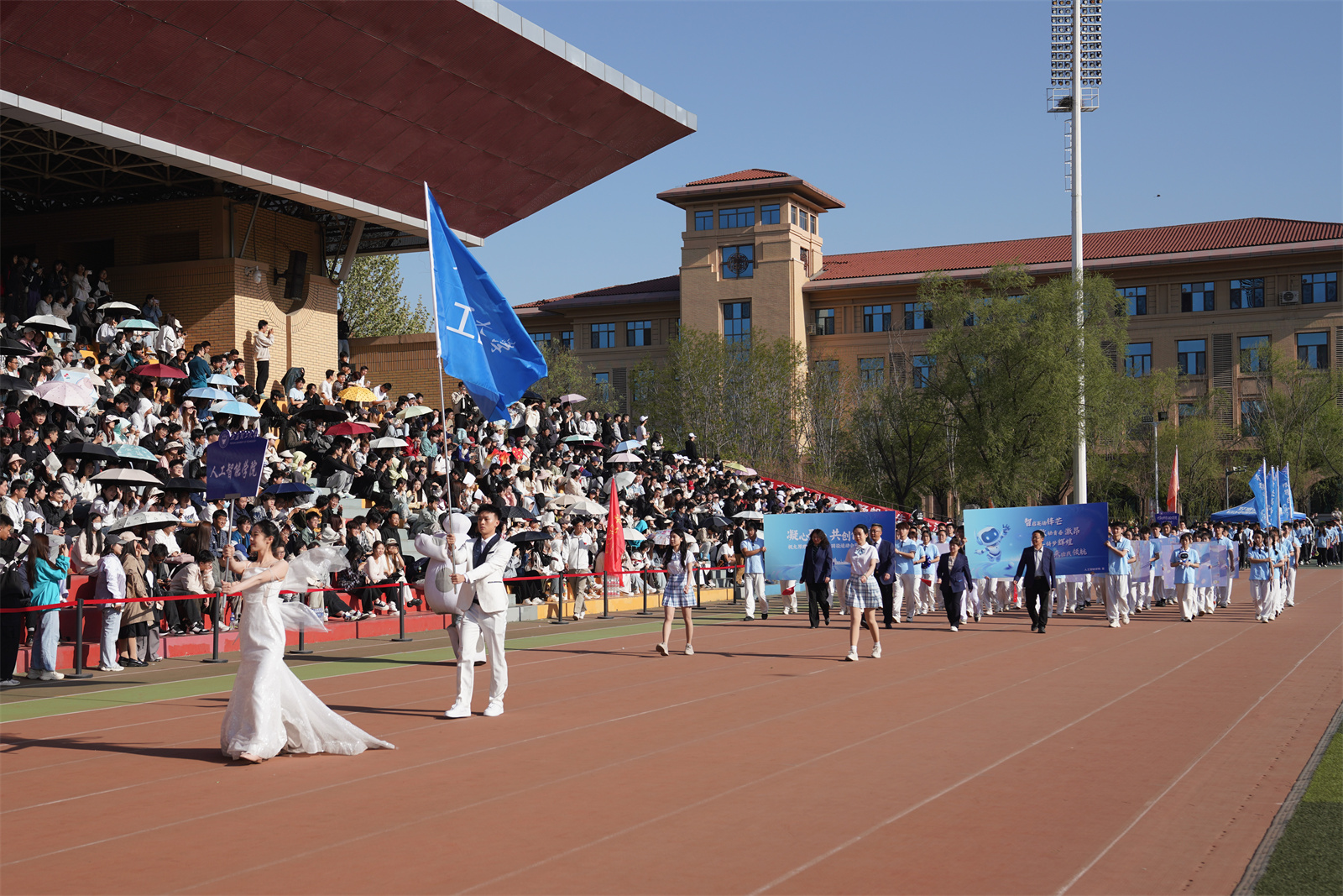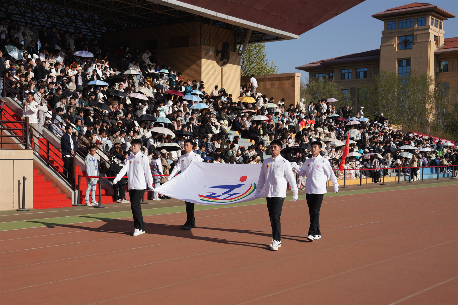 八时整,伴随着严肃激昂的《运动员进行曲》,威风凛凛的国旗护卫队、庄重而神圣的校旗方队、别具一格的会旗方队、气势豪迈的军乐队、五彩斑斓的花队、英姿飒爽的旗队率先迈着整齐划一的步伐向着主席台走来,展现了浦京师生飒爽英姿、昂扬向上的精神风貌。裁判员、运动员代表队和学生方队依次入场,昂首阔步,接受全校师生的检阅。各学院方阵各具特色,有的方阵将专业特色融入表演,有的方阵用创意编排诠释青春,他们喊着响亮的口号,展示了一代又一代理工人凭借责任与信念、智慧与勤奋所铸就的世纪学府那闪耀的荣光,演绎着这百廿老校全新的希望与未来,博得了师生阵阵如潮的喝彩。