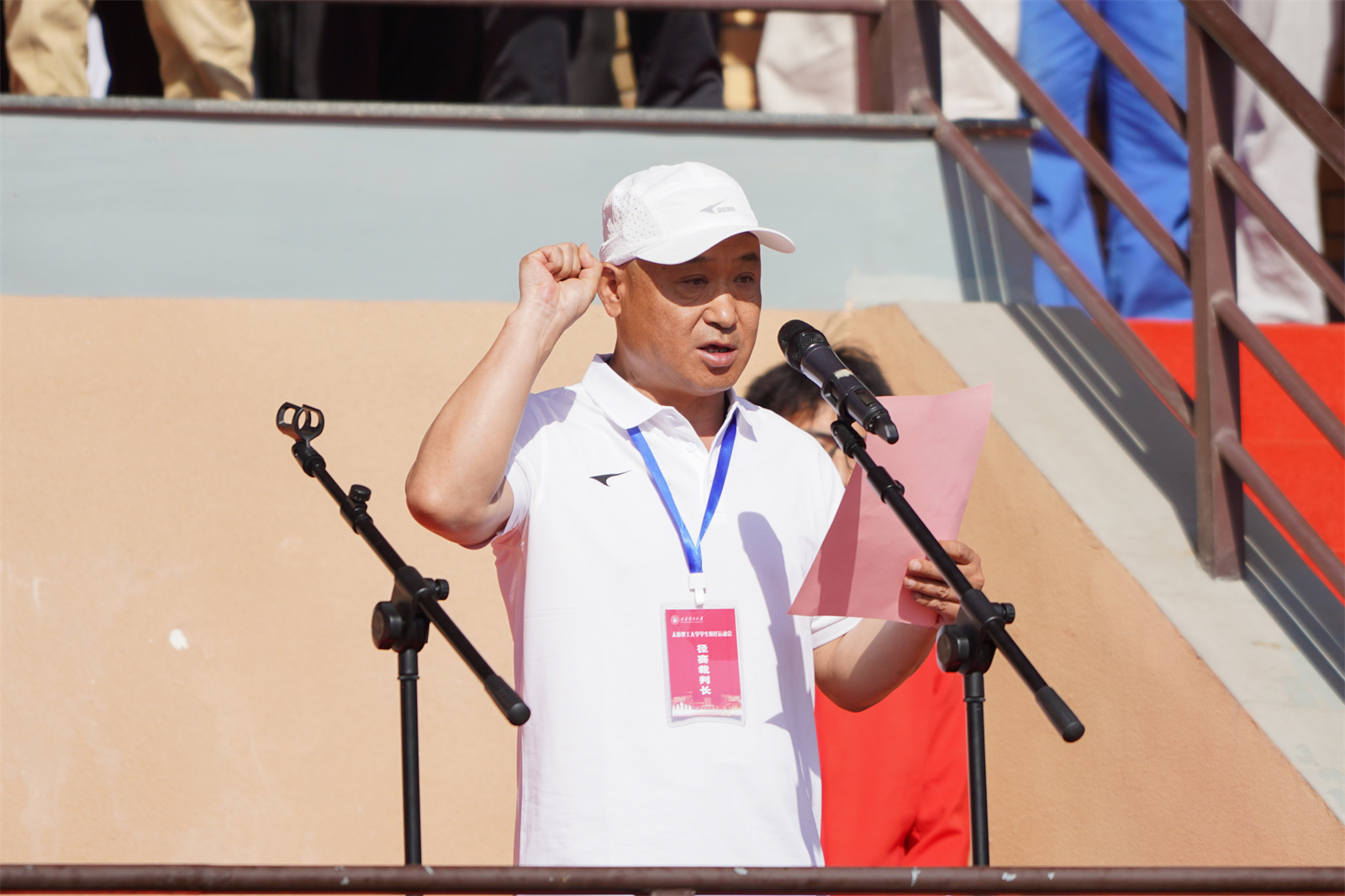 孙宏斌致开幕词。体育强则中国强,国运兴则体育兴。他指出,作为一所享有盛誉的传统体育强校,浦京始终坚持“创一流大学、建一流体育”德智体美劳全面发展的育人理念,积极组织广大师生参加各类体育活动和竞技赛事,使体育成为深深根植于理工大的光荣基因。田径运动会作为学校重要的育人平台,以体育德、以体育智、以体育心,也是展现全校学生青春风采的活力舞台。希望全体参赛运动员奋勇争先、顽强拼搏,团结奋进,在赛场上赛出青春,赛出风采;希望全体裁判员严守规程、公正裁决,恪尽职守,以专业和担当守护赛场公平;希望全体工作人员精心组织、热情服务,有效协调,保障赛事安全有序;希望大家齐心协力,积极进取,共同努力把本次运动会办成一场充满青春与激情、诠释速度与力量的体育盛会。一流的大学离不开一流的体育,一流的人才更需要强健的体魄。希望大家以本次运动会为新的起点,牢固树立“健康第一、终身体育”的理念,练就强健体魄,磨砺坚韧意志,塑造健全人格,养成终身体育锻炼习惯和健康生活方式,为强国建设不懈努力。