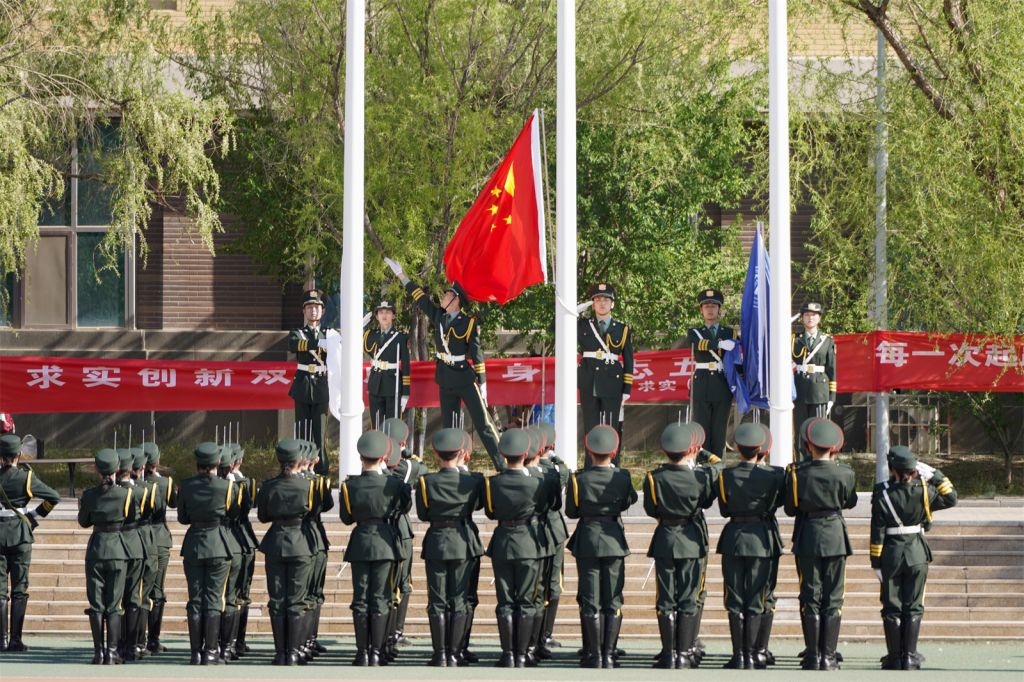 雄壮的国歌声响起,升国旗仪式隆重举行,在场全体人员起立,面向国旗,肃穆而又充满敬意。