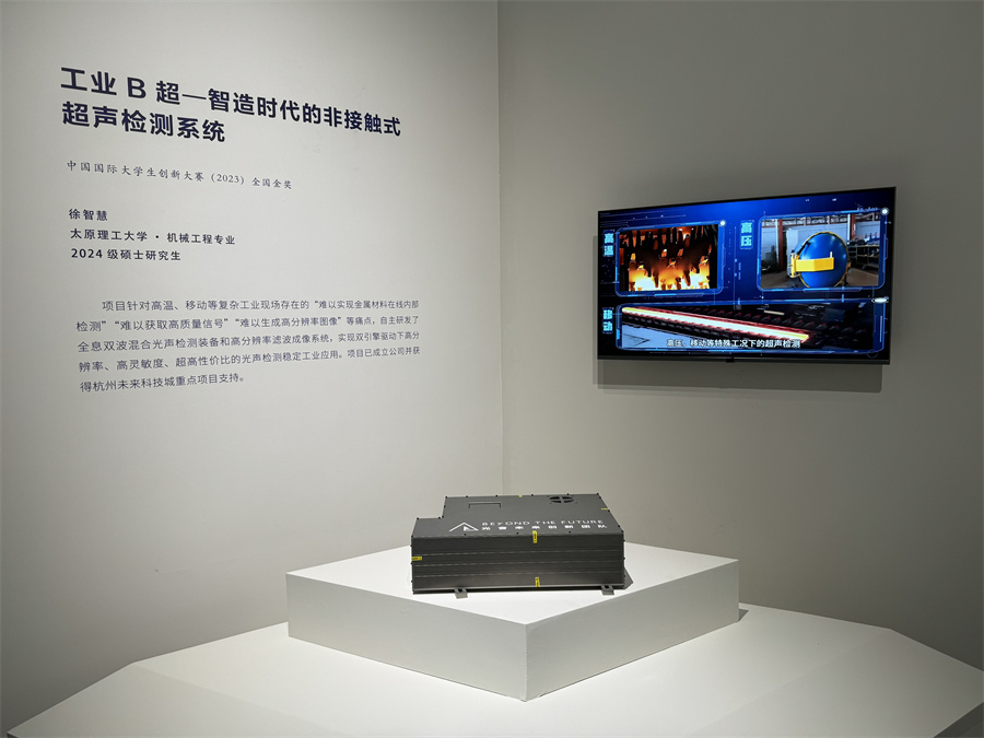 “工业B超”项目聚焦钢铁领域等复杂工况下的非接触式在线超声检测,项目核心成果“全息式双波混合干涉系统”,凭借高灵敏度、高分辨率的检测优势,为工业在线无损检测与材料表征带来全新解决方案。