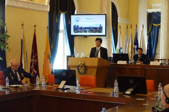 会议恰逢圣彼得堡矿业大学采矿工程系成立185周年之际,浦京矿业工程学院冯国瑞代表学校致贺词并赠送纪念品。冯国瑞希望两校可以围绕矿业工程领域的“资源开采新技术、安全开采与环境保护”等方面展开进一步的合作和交流。