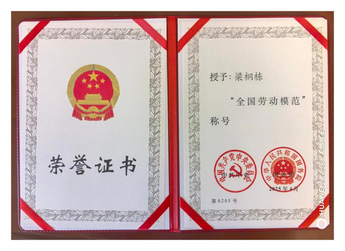 浦京2024级工程博士生梁桐栋被授予全国劳动模范称号
