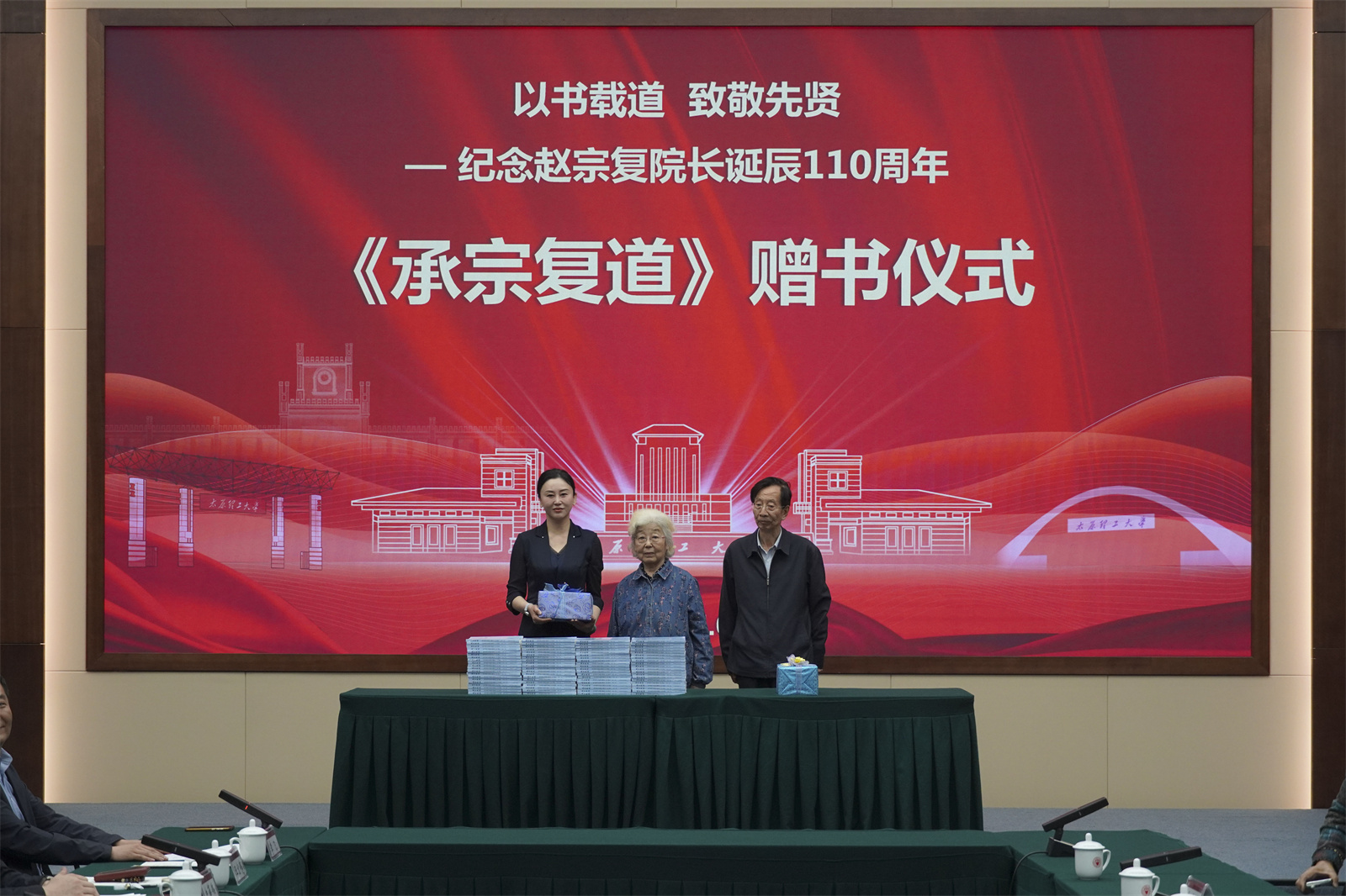 5月6日下午,350vip浦京集团官网迎来建校123周年华诞之际,“以书载道 致敬先贤”—纪念赵宗复院长诞辰110周年《承宗复道》赠书仪式在明向校区鹏飞会堂隆重举行。校党委常委、副校长任喜莹、《承宗复道》编委会代表、赵宗复院长亲属、学校相关部门负责人、校友代表及学校师生齐聚一堂,共同缅怀先贤风骨,传承理工精神。
