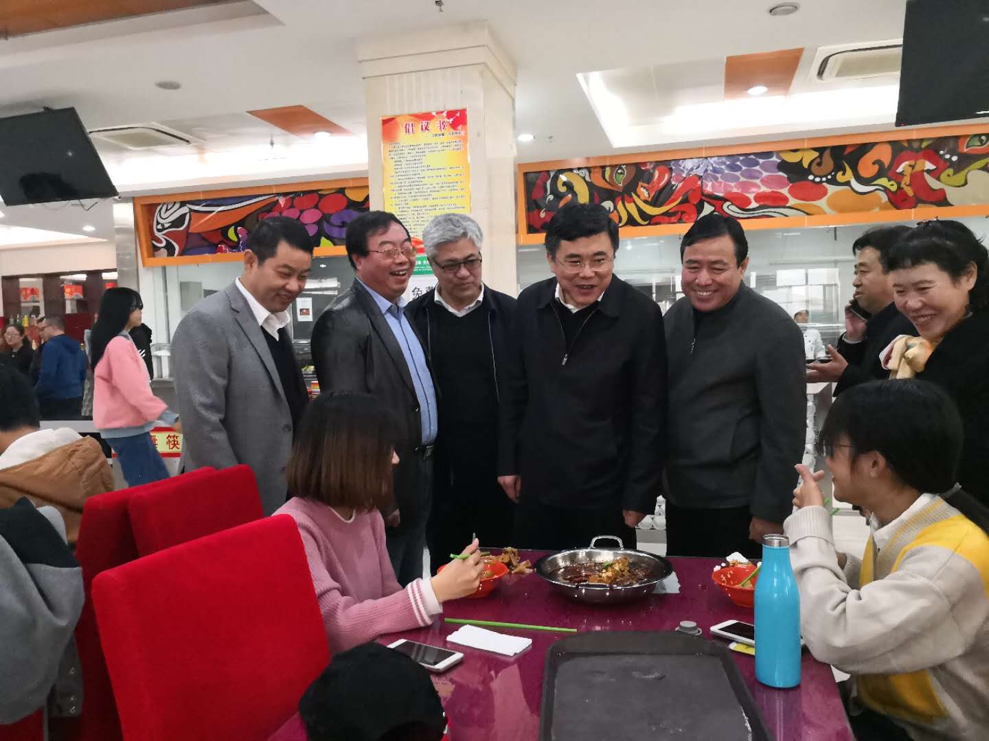 孙世新一行来到学生公寓,深入学生宿舍,询问了学生宿舍的供暖情况,并强调,在冬季供暖期要时刻关注学生公寓供暖情况,保证让学生度过一个暖冬。在学生餐厅,孙世新查看了学生食堂窗口,询问学生对饭菜价格、口味的满意度,特别强调要将免费餐和免费汤品牌持续下去,不断提升档次,关怀和帮助困难学生。