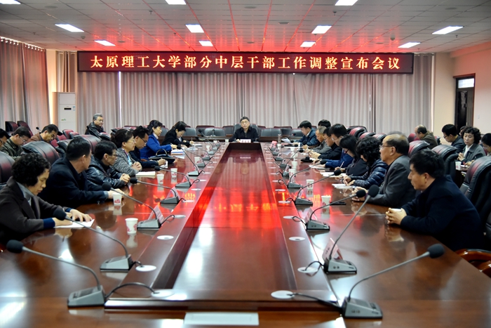 11月6日上午,在逸夫楼六层会议室召开部分中层干部工作调整宣布会。校长黄庆学对岗位调整的干部为学校事业发展进步所付出的辛勤工作表示感谢,并提出了希望和要求。会议由党委副书记沈兴全主持,涉及岗位调整的中层干部及相关部门负责同志参加了会议。