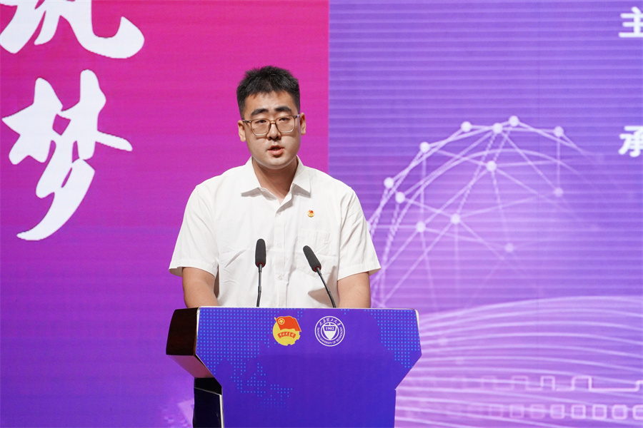 “挑战杯”指导教师代表、矿业工程学院戚庭野讲述了多年来指导学生参加竞赛的经历与感悟、突破与收获,以为党育人、为国育才的初心使命助力学生将科技报国的理想转化为现实。往届国奖获奖选手代表、机械工程学院耿怀德分享了自己在科研实践中以坚持破除万难、以创新驱动突破的故事,以亲身经历鼓励青年学子在浩瀚学海中破浪前行、在创新创造中奋斗担当。