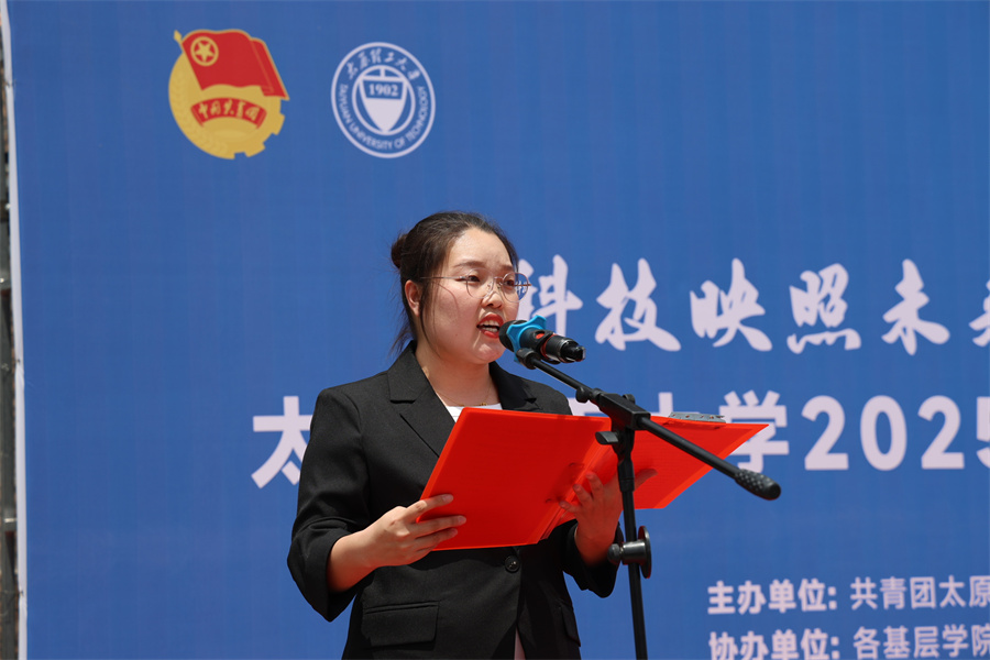 校团委负责人在致辞中强调,本次科技文化艺术节恰逢学校承办第十九届 “挑战杯” 山西省大学生课外学术科技作品竞赛之际,是贯彻习近平总书记重要指示精神、推动人才培养的重要实践。科技文化艺术节为同学们搭建了广阔平台,鼓励他们勇于探索、大胆创新,施展青春奋斗活力。