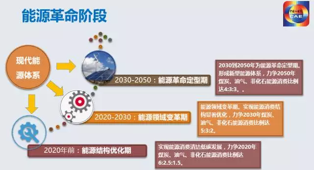 谢院士提到,“中国工程院于2013年5月组织30余位院士、300余位专家开展了为期两年多的《推动能源生产和消费革命战略研究》的一期工作,提出了能源革命的技术方向、战略举措及其将经历的三个发展阶段,为中国的能源革命提供了有价值的科学咨询。研究成果提出中国能源革命将经历能源优化期、能源变革期、能源定型期三个重要阶段。能源技术革命是能源革命的关键,其实质是能源转换的革命,其目标是对各类各种能源的有效驾驭和高效转换;颠覆性技术是有效促进能源低碳转型的基本保证。”