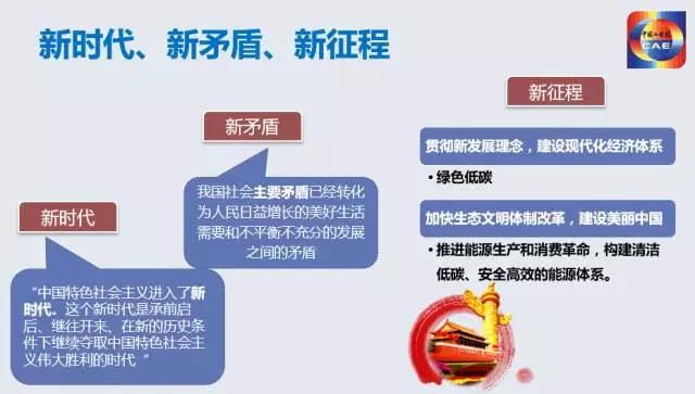 谢院士指出,“2012年11月党的十八大报告首次提出‘推动能源生产和消费革命’,2014年6月,习近平总书记就此明确了推动能源供给、消费、技术、体制革命和国际合作,为能源革命指明了方向。2017年10月,党的十九大报告中习近平总书记提出中国特色社会主义进入了新时代,社会主要矛盾发生了变化,并重申‘推进能源生产和消费革命’,进而提出‘构建清洁低碳、安全高效的能源体系’,开启了新征程中的能源革命,促进了新时代下的能源体系构建,为实现‘在本世纪中叶建成富强民主文明和谐美丽的社会主义现代化强国’的发展目标做出努力和贡献。”