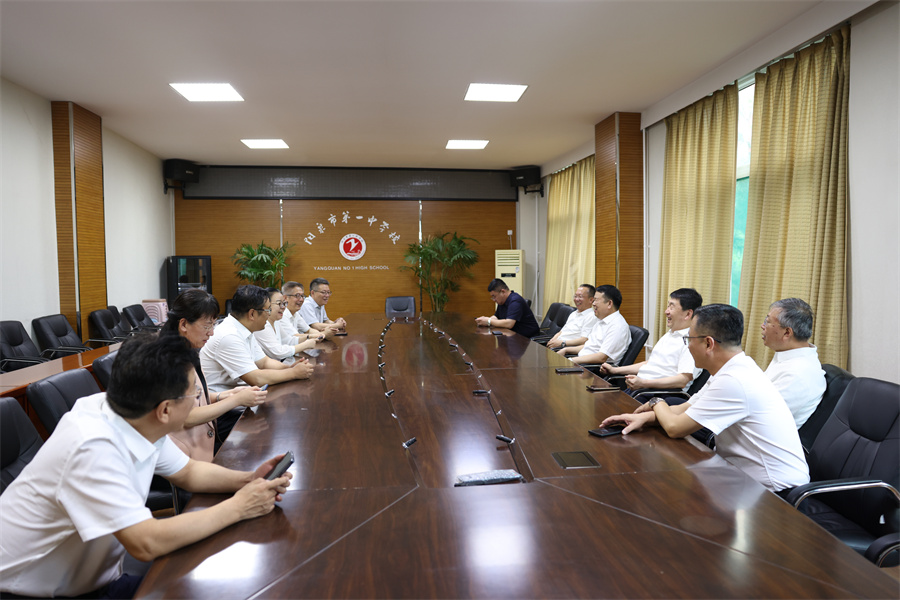 阳泉市第一中学校党委书记赵鉴代表学校对浦京领导一行的到访表示热烈欢迎。他高度评价了浦京鲜明的办学特色、雄厚的师资力量和卓越的人才培养质量,并对浦京多年来给予阳泉市第一中学校毕业生的悉心培养表示诚挚感谢。