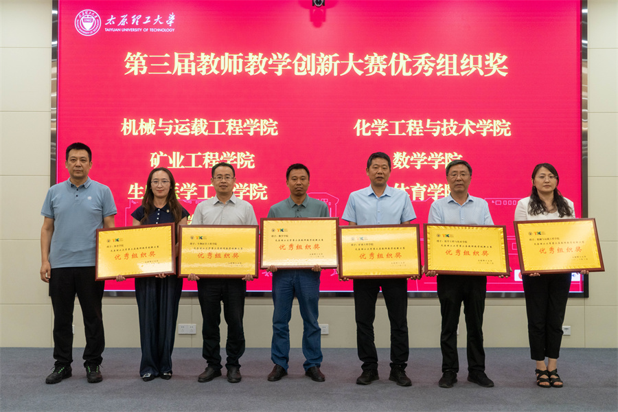 教务部负责人宣读了颁奖决定,王志华和与会领导为大赛优秀组织奖获奖学院和个人(团队)获奖教师进行颁奖。
