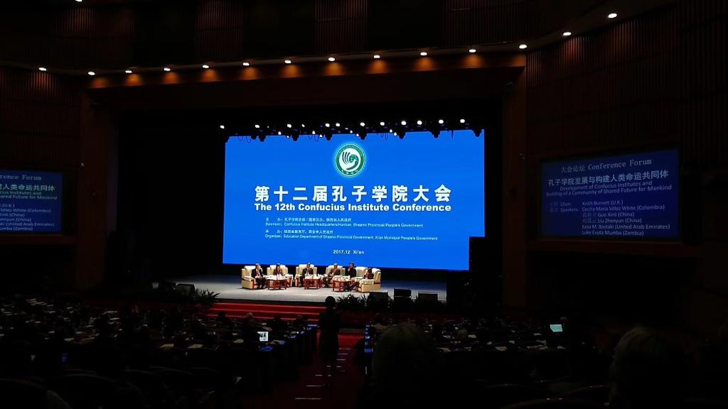 第十二届全球孔子学院大会于2017年12月12日在西安开幕。开幕式由教育部部长、孔子学院总部理事会副主席陈宝生主持。国务院副总理、孔子学院总部理事会主席刘延东发表主旨演讲。来自全球140个国家的大学校长、孔子学院代表、国内有关部委、地方教育主管部门、中方承办高校代表,约2500人出席会议。浦京梁卫国副校长与国际教育交流学院相关事务负责人参加。