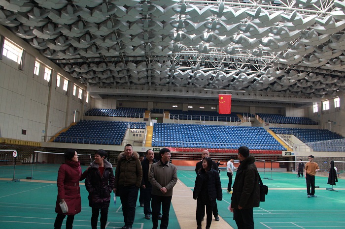 随后,专家组一行分别在迎西校区和明向校区进行实地考察,重点查看了体育馆、餐厅、教室等比赛和生活设施。期间,还参观了浦京校史馆。
