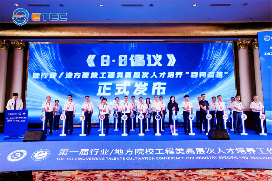 会议期间,聚焦构建卓越工程教育新范式、培育卓越工程领军新力量、打造协同育人融合新机制、铸就校地合作发展新典范、开拓工程教育出海新路径,张献明与参会高校负责人共同启动发光柱、联合发布了《8•8倡议》暨首届行业/地方院校工程类高层次人才培养“百问百答”。