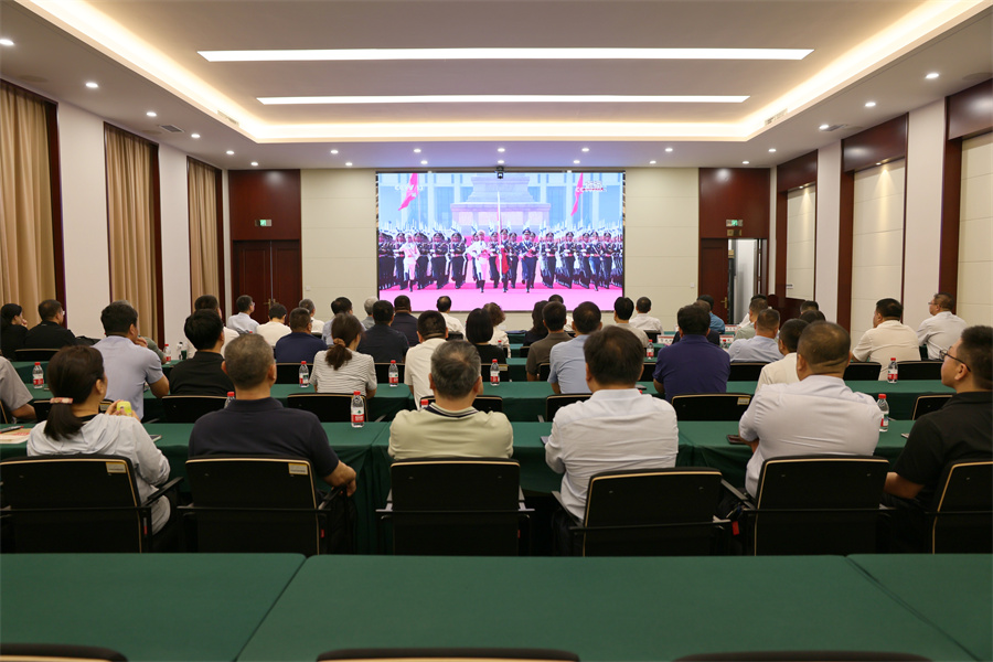 校党委理论学习中心组成员、学校机关副处级以上干部在迎西校区会议中心集中收看大会盛况。