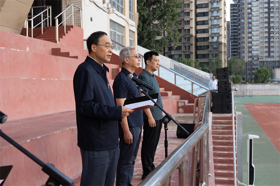 校长孙宏斌在迎西校区仪式上讲话,肯定了过去一学年全体师生员工共同奋斗取得的丰硕成果。他指出,过去一年,通过全体师生员工的共同努力,学校在人才培养、科学研究、社会服务、文化传承创新等方面均取得了令人欢欣鼓舞的新成就。学校科研团队在关键核心技术领域不断取得新突破,服务国家重大战略和区域经济发展的能力持续增强;广大学子在国内外各类竞赛舞台上摘金夺银,充分展现了太理学子卓越的创新精神与扎实的实践能力。他寄语全体同学,要从庄严的升国旗仪式中汲取奋进力量,将心中的爱国爱校之情转化为刻苦学习、奋发向上的实际行动;牢记 “求实、创新” 校训精神,秉承太理人的优良传统,以青春之我、奋斗之我,为学校发展务实进取,为祖国建设添砖加瓦!