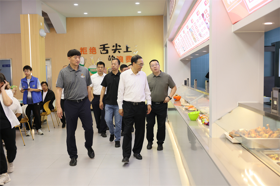 在校园餐厅,孙宏斌查看了菜品种类、卫生状况与价格公示,着重强调,要严格把控食品安全,丰富菜品样式,为同学们提供营养健康、价格实惠的餐饮服务。