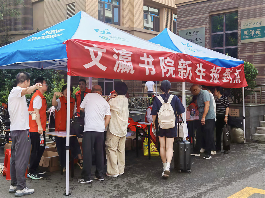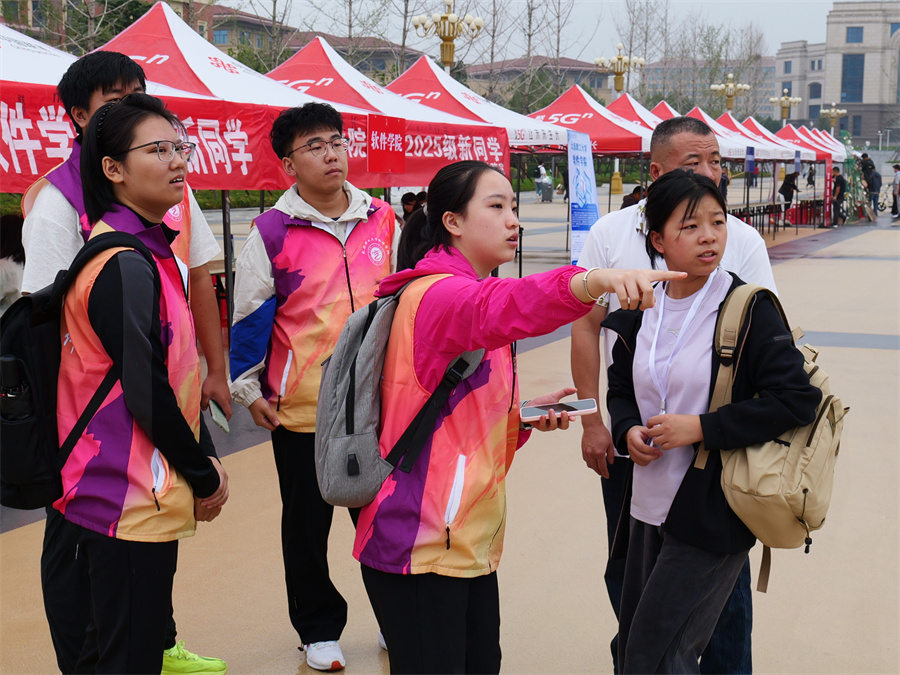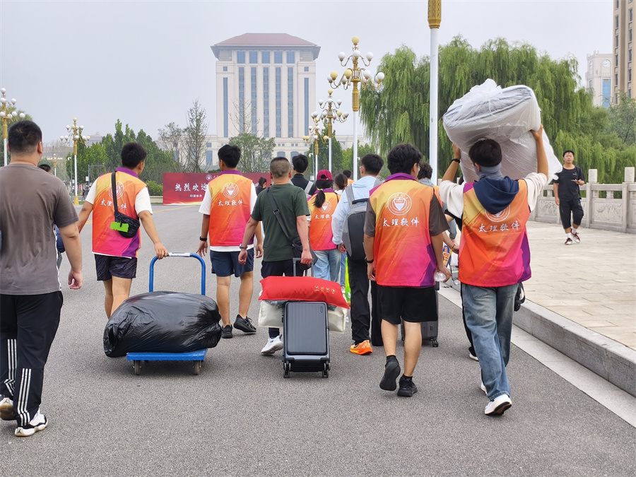 在三个校区,色彩鲜明的迎新横幅在微风中舒展,写满温馨指引的指示牌有序摆放,志愿者们身着统一服装,热情地接过新生手中的行李,耐心解答着关于报到流程、校园生活的各类疑问。“同学,这边是报到处,需要先核对信息再领取校园卡。”“行李重不重?我帮你送到宿舍楼下!”一句句贴心的话语、一个个忙碌的身影,让初来乍到的新生与家长瞬间感受到了学校的温暖。
