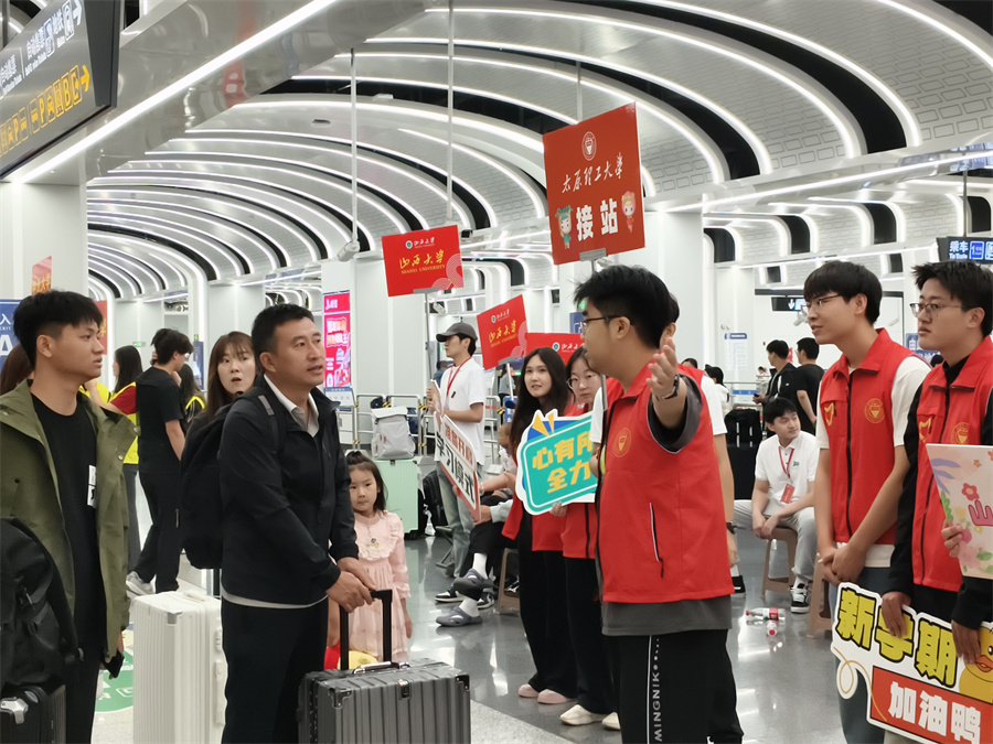 据了解,本次迎新工作根据学校统一安排,相关部门和各学院积极组织师生,认真细致做好迎新接待工作,校团委、求实(宗复)学院、软件学院共组织1900余名学生志愿者参与,报到现场承担了引导、咨询、办理报到手续、行李搬运等多项工作,用实际行动诠释着“奉献、友爱、互助、进步”的志愿精神,成为校园里一道亮丽的风景线。学校在太原火车南站、武宿机场、榆次火车站、晋中高铁站等站点均有志愿者现场引导,并安排迎新专用大巴车辆,不间断往返学校和机场车站接送新生和家长。在各校区校门入口处设置引导,在校园广场设立报到处,搭建遮阳帐篷和家长休息区。