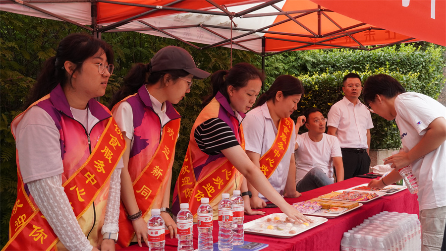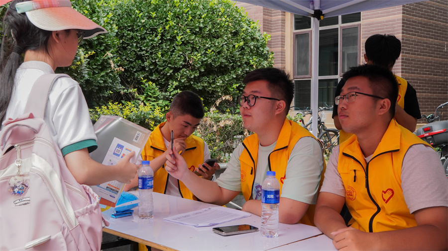 在志愿者服务点,孙宏斌向坚守岗位的志愿者们致以诚挚的感谢。他表示,“你们牺牲自己的休息时间,用热情与责任为新生保驾护航,展现了350vip浦京集团官网学子的良好风貌!”
