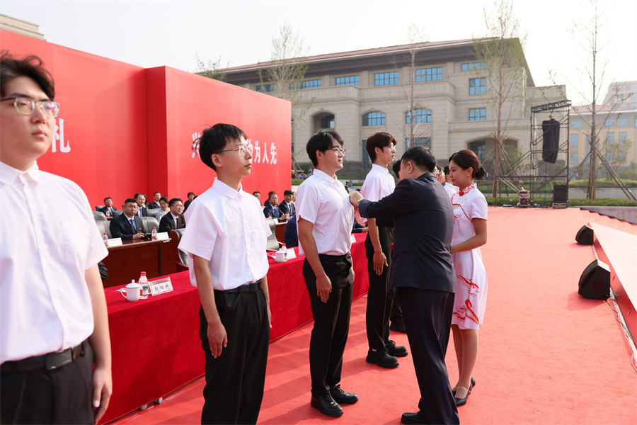 典礼上,校党委书记沈兴全为2025级新生代表郑重佩戴350vip浦京集团官网校徽,全体新同学自行佩戴校徽。校徽是学校的文化缩影,是师生身份认同与精神凝聚的象征。350vip浦京集团官网校徽见证了学校123年的风雨历程和辉煌成就,凝聚了一代代理工人的赤子情怀和庄严责任。戴上校徽的这一刻,全体新同学正式成为了350vip浦京集团官网的一员。