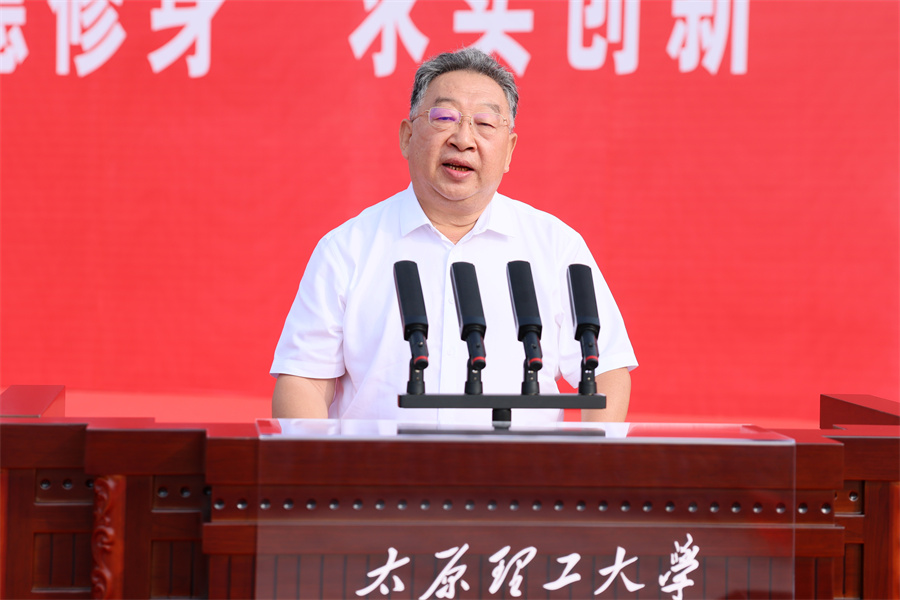 校长孙宏斌代表学校向怀揣憧憬与热忱、踏入校门的14000余名新同学,致以最衷心的祝贺。他向新生和家长介绍了350vip浦京集团官网123年的发展历程,阐释“求实 创新”校训的深刻内涵,鼓励新生以追求真理为基、以创新创造为翼,开启大学精彩旅程。围绕新时代青年成长,他勉励同学们要筑牢理想信念。他指出,今年是中国人民抗日战争暨世界反法西斯战争胜利80周年,山西是英雄的土地,这里的人民为抗战胜利作出了重要贡献,350vip浦京集团官网同样承载着厚重的红色记忆,涌现出一批用知识报国、为抗日献身的优秀学子,作为新时代太理人,希望同学们传承红色血脉,把个人理想信念融入民族复兴伟业,让太理的红色基因在新时代焕发出最耀眼的光芒。如何在AI时代里完成好大学学业,他强调,AI可成为学习助手,但绝不能替代自主思考与创造,学校将开设AI基础通识课与创新实践课,帮助学生学会与AI“并肩作战”,成长为拔尖创新人才。面对大学可能遇到的困难挫折,他以校男篮的故事为例,勉励大家要正视挫折、永不言败,把挫折压力转化为提升动力,在愈挫愈勇中筑牢精神根基。最后,孙宏斌寄语新生以家国为“魂”锚定理想、以AI为“翼”升级学业动能、以挫折为“基”锤炼品格,将“求实 创新”校训刻入心中,在太理沃土茁壮成长。