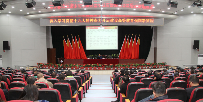 1月30日下午,国家教育行政学院原党委书记、常务副院长、博士生导师黄百炼教授,在博学馆报告厅作题为《深入学习贯彻十九大精神,奋力开启建设高等教育强国新征程》的专题报告。报告会由校党委组织部负责人主持。学校全体处级干部、机关科级干部参加了报告会。