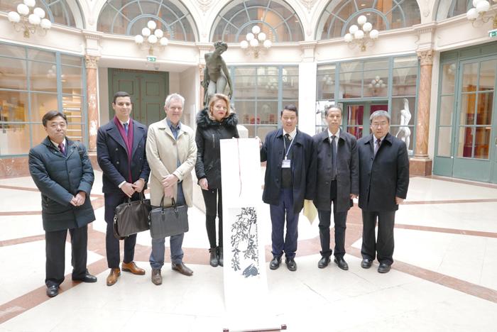 图3:代表团访问法国巴黎高等艺术学院(左四为Allain julien院长)