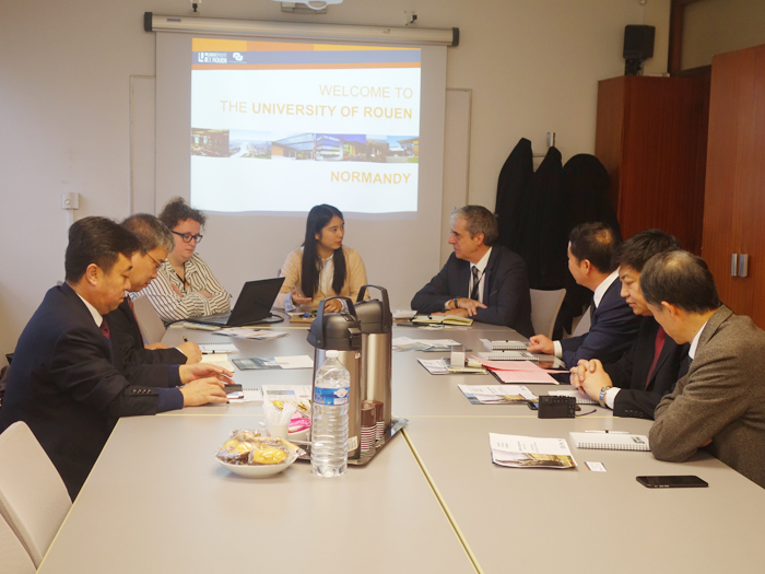 图2:代表团与法国鲁昂大学副校长Philippe Lane(右四)举行会谈