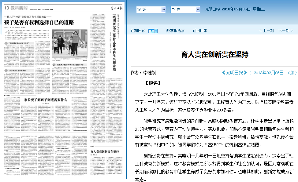 光明日报:育人贵在创新贵在坚持