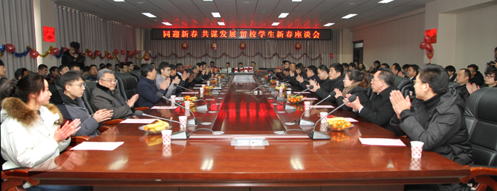 上午10点30分,“同迎新春共谋发展留校学生新春座谈会”在一片热情洋溢的气氛下正式开始,学生处处长郝根彦主持座谈会。首先由在校的研究生、本科生、留学生代表向校领导汇报了寒假留校的原因、学习安排和留校过春节的感受。他们讲到,因为学习、实习、兼职、准备考试、参加比赛等原因留在了学校,寒假期间,学校做了大量周密而细致的工作,让他们在学校感受到了家的温暖与温馨,感受到了节日的气氛,非常感谢学校的重视和关怀。电气与动力工程学院学工办主任杨振东、软件学院党委副书记闫新、后勤保障处处长张富强分别作为学院代表、职能处室代表发言,为同学们送上节日祝福,鼓励大家珍惜在校学习机会,拼搏奋进,锐意进取。