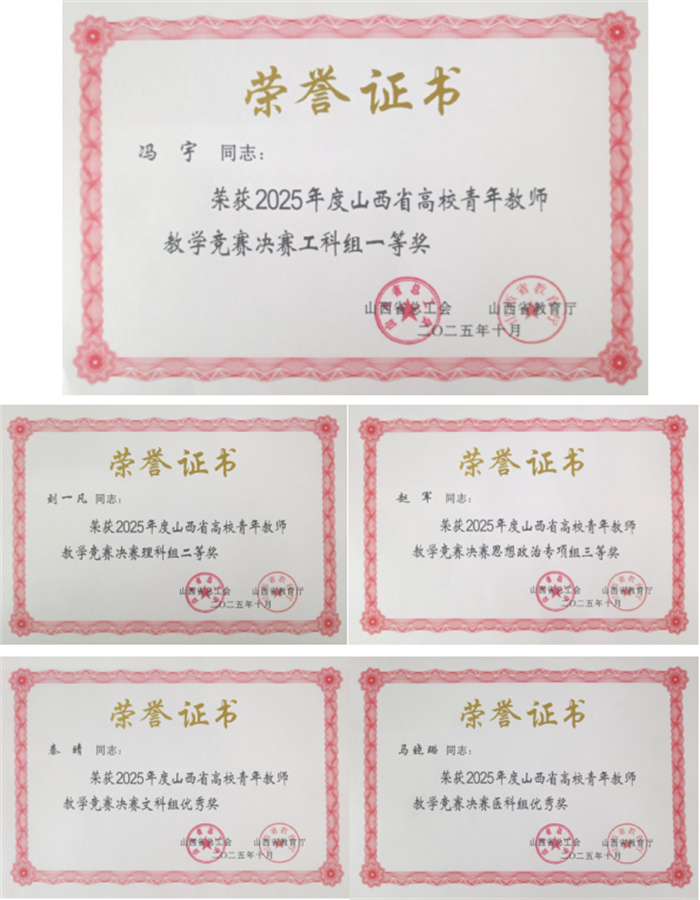 近日,由山西省总工会、山西省教育厅联合主办的2025年度山西省高校青年教师教学竞赛决赛在山西大学举办。浦京选派五位教师参赛,获一等奖1项、二等奖1项、三等奖1项、优秀奖2项,学校荣获优秀组织奖。