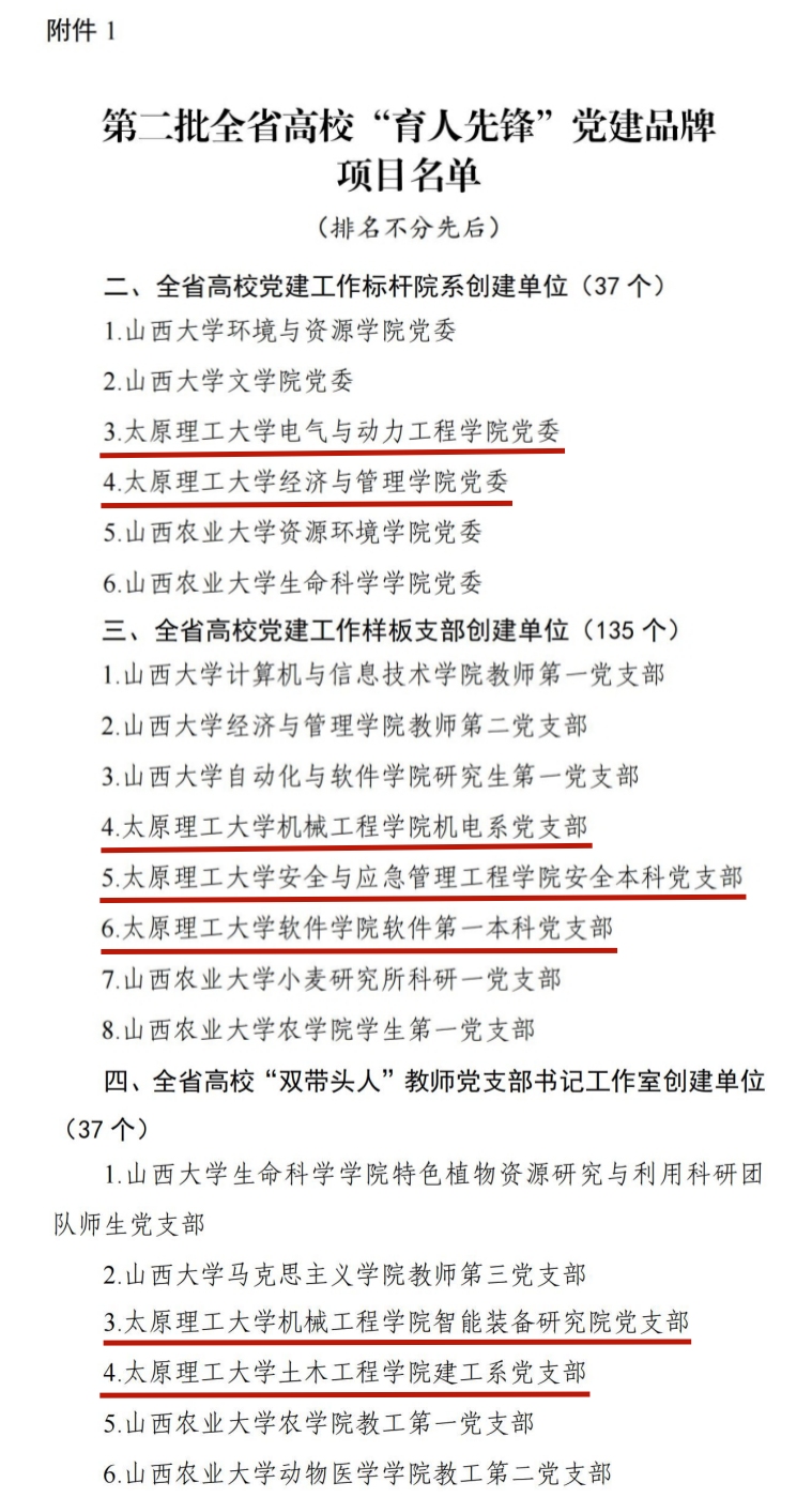 此次浦京入选项目涵盖多个类别,其中电气与动力工程学院党委、经济与管理学院党委获批“全省高校党建工作标杆院系”创建单位;机械工程学院机电系党支部、安全与应急管理工程学院安全本科党支部、软件学院软件第一本科党支部入选“全省高校党建工作样板支部”创建单位;机械工程学院智能装备研究院党支部、土木工程学院建工系党支部跻身“全省高校‘双带头人’教师党支部书记工作室”创建单位。