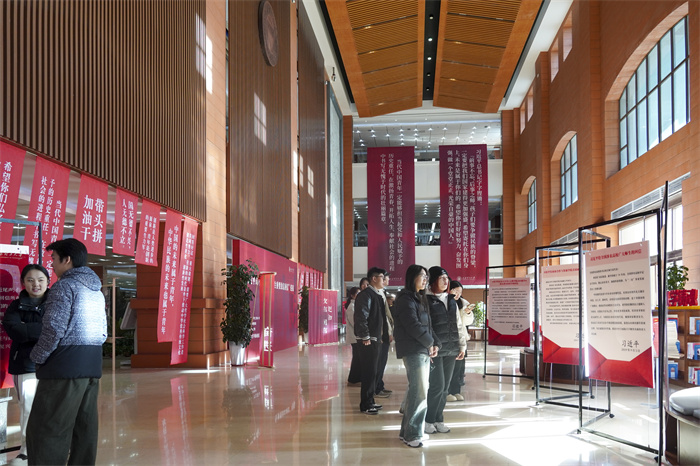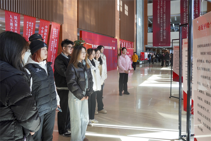 巡展期间,图书馆大厅党建专区内时常人头攒动,师生们或驻足凝视展品、轻声诵读嘱托,或与同伴交流感悟、记录学习心得,工作人员全程提供引导与讲解,现场学习氛围浓厚。各学院师生结合自身学习、工作与成长实际,纷纷分享观展感悟,让习近平总书记的殷切嘱托真正走进心中、化为行动。