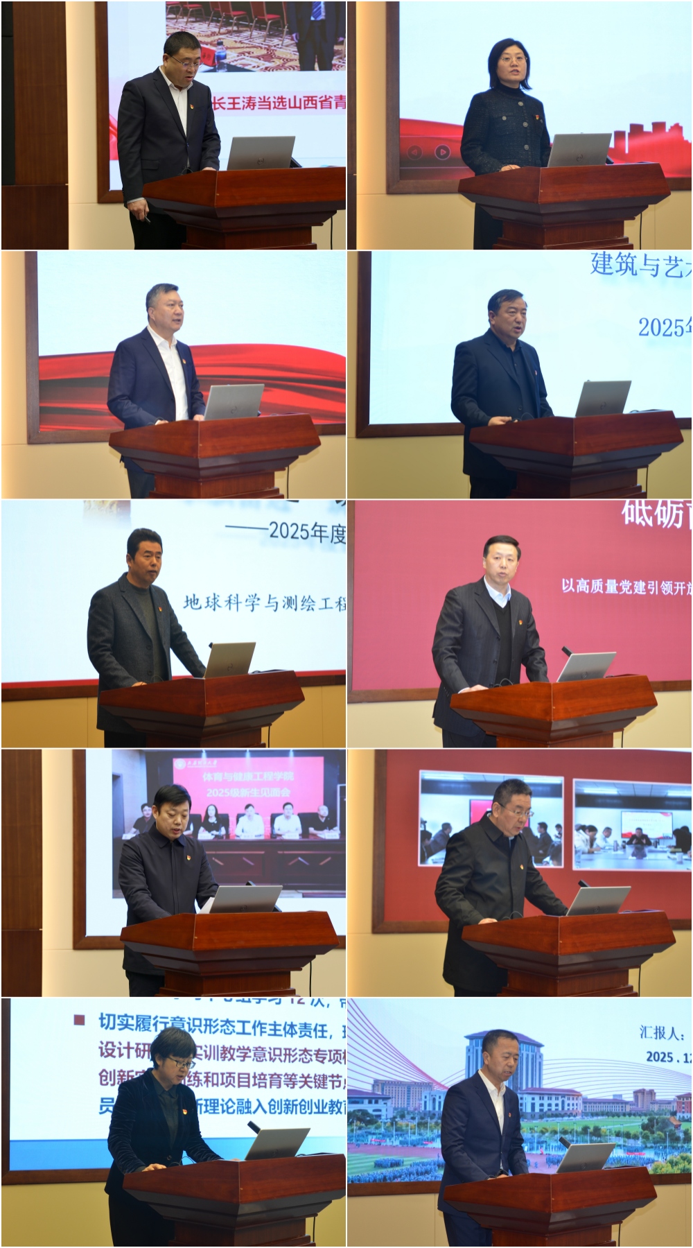 会上,10位基层党委书记围绕履行党建“第一责任人”职责,聚焦政治建设、理论武装、组织力提升、党建与业务融合、服务国家战略和区域发展等方面,系统汇报了2025年度抓基层党建工作的主要做法、成效亮点、存在问题及下一步思路举措。述职内容紧扣立德树人根本任务,突出党建引领高质量发展,特别是今年开展党建工作规范提升专项行动以来取得的成效,体现了高度的政治自觉和强烈的责任担当。
